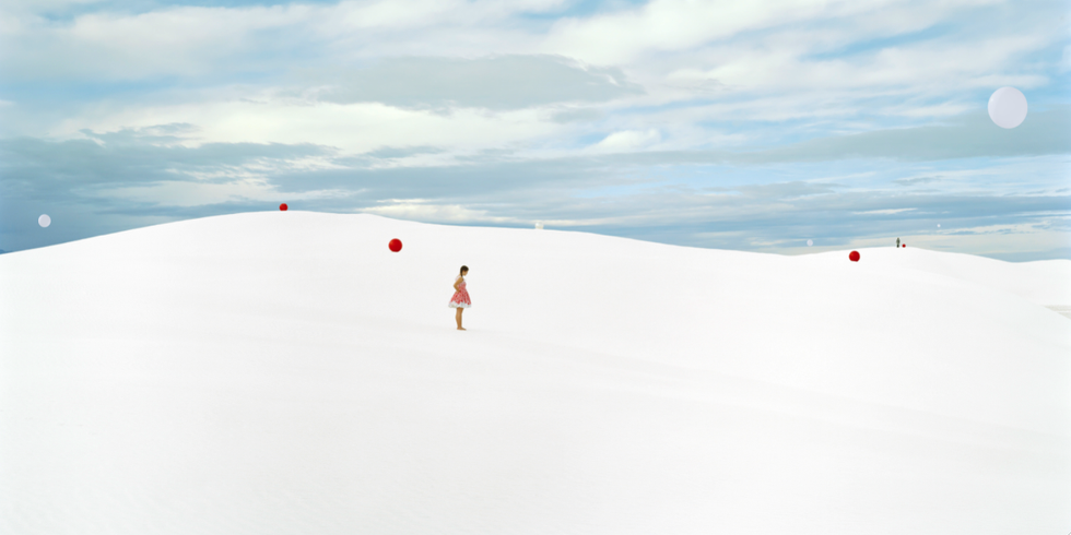 Conjure up memories of lonely Alice finding her way through an unfamiliar magical world in Alice in Wonderland, or relive James Henry Trotter's surreal, peachy adventure with strange insects in Roald Dahl's James and the Giant Peach. Now, hold tightly onto that vision, and take a gander at the images here by LA-based artistic duo Jeff Charbonneau and Eliza French. The similarities are striking, so much so that Photograph magazine referred to their work as "Fellini's take on Lewis Carroll."