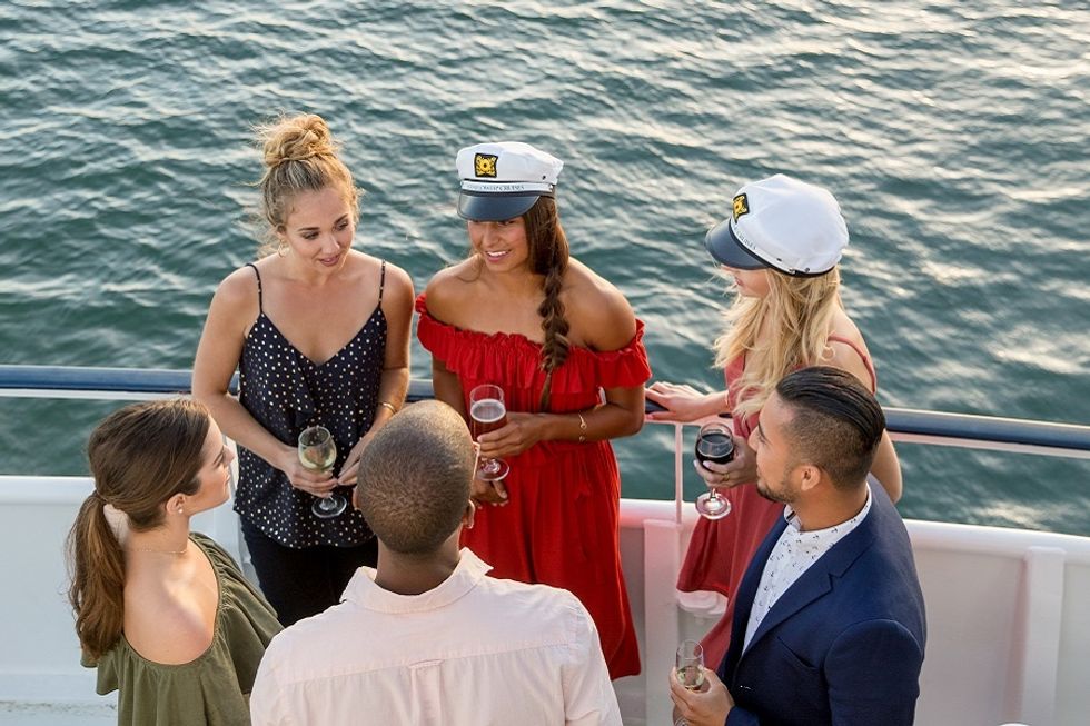 The shimmering Bay Lights set the mood for a romantic outing complete with an elegant four-course dinner made onboard with local, seasonal ingredients, followed by a turn on the dance floor as Coit Tower and the Transamerica Pyramid loom overhead.