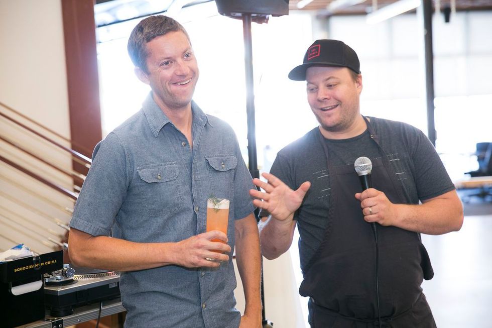 Head chef Evan Rich and mixologist Corey Harrison of Rich Table poured their new Hangar 1 Vodka wild summer cocktail for the very first time last week at Pinterest's housewarming party in celebration of their newly renovated office space.