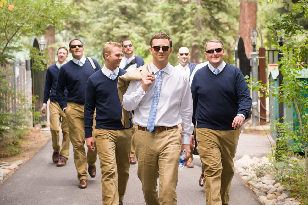 Despite getting married at a private estate on the north shore of Lake Tahoe, Nick and Hannah wanted to use as many San Francisco vendors as they could, so Hannah's gorgeous dress, the desserts, the chocolates for the s'mores and the groomsmen's pants were all made locally.