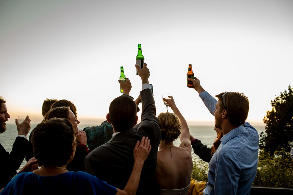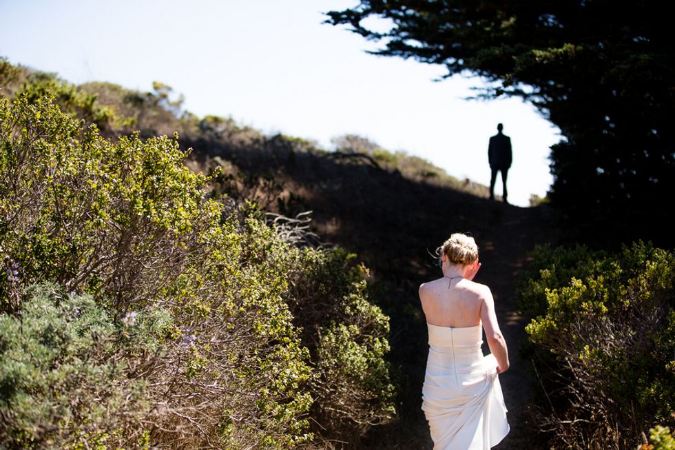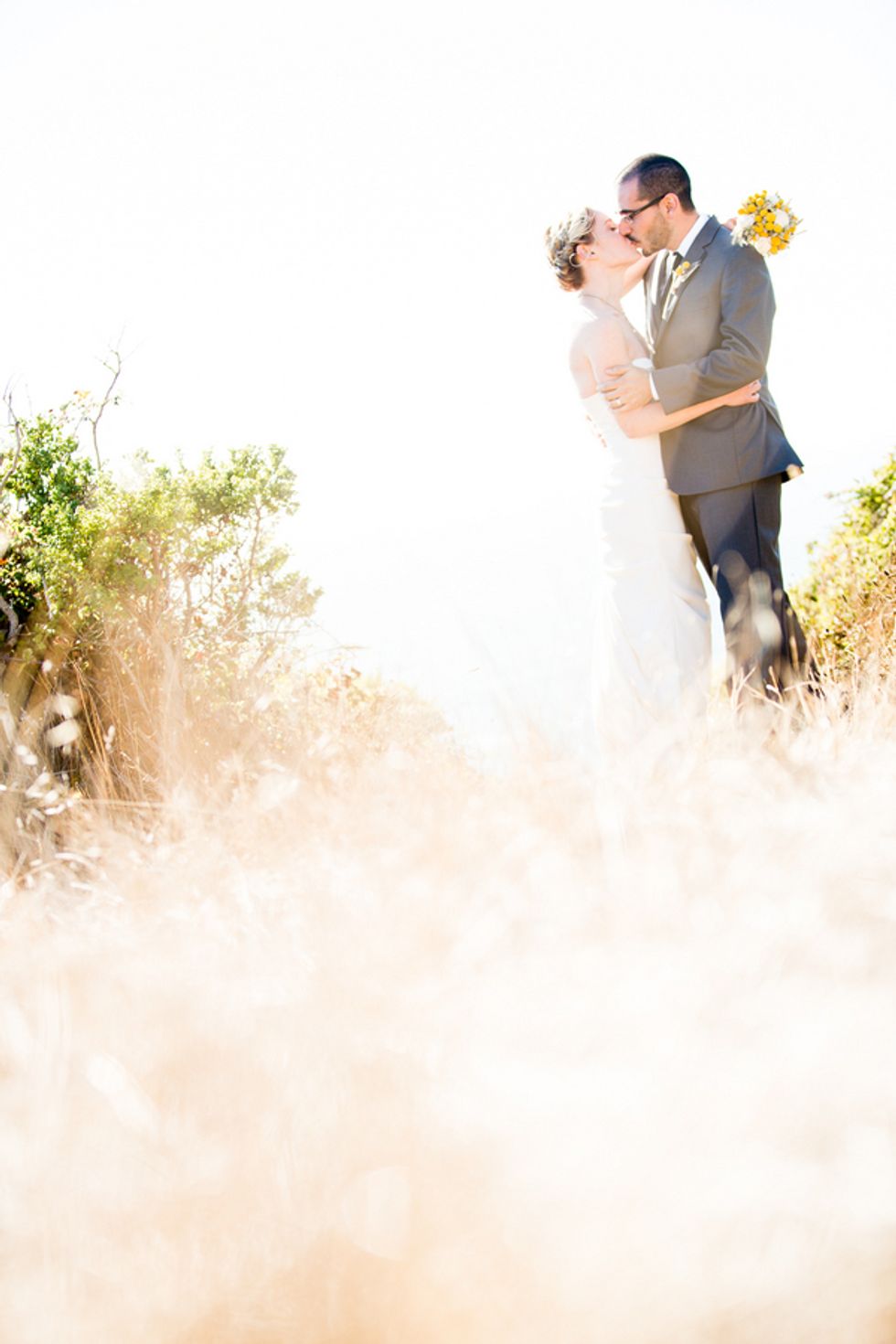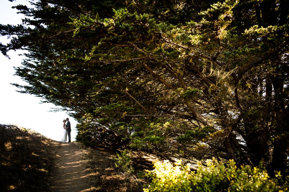 The landscape was rich and beautiful, overlooking the Pacific Ocean at their ceremony site and at the reception area. They and their guests even set up camp between the ceremony and reception, as the evening would turn into a post-wedding camping excursion.