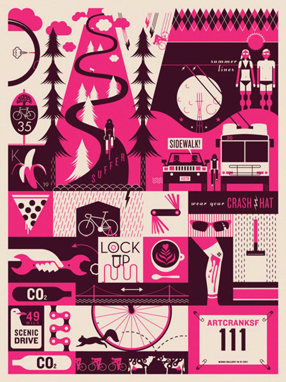 1. Bikes of San Francisco, 11 bikes for 11 neighborhoods. 2-color screenprint by Tor Weeks