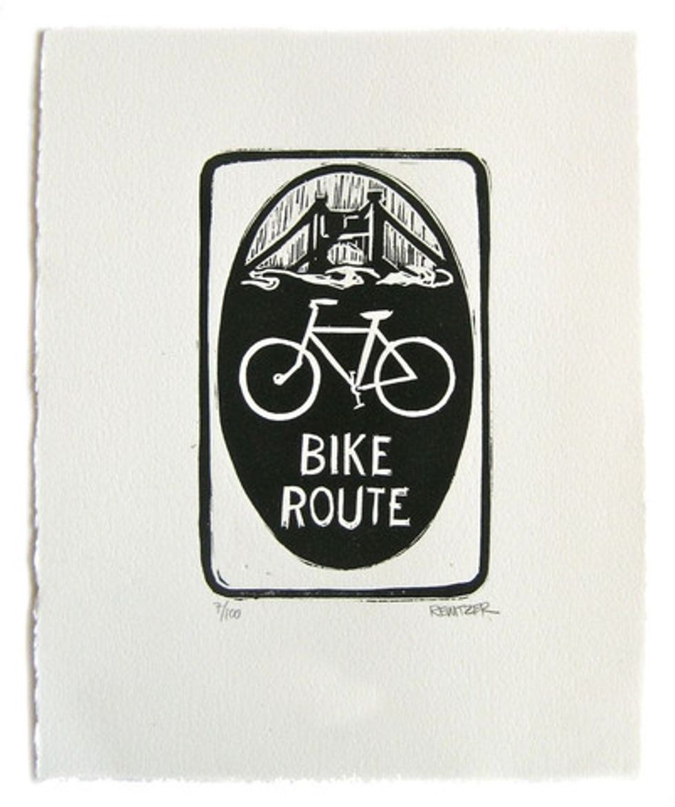 3. SF Bike Route, Hand-Pulled Linocut by 3FishStudios