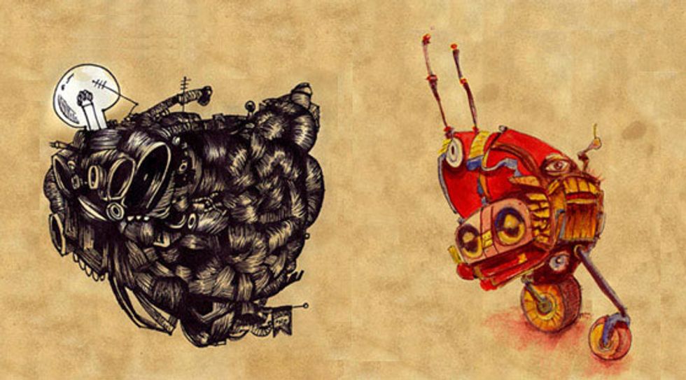 “Navigating this city and our planet requires cycles. These patterns result in movement and change.” Roll Up Gallery keeps its introductory remarks to this purposely ambiguous phrase, which at once conjures the obvious, a bicycle, and myriad phenomena more abstract and intangible in nature. Open-ended themes are often the most fruitful for group exhibitions. In this one, talented painters/illustrators Alice Koswara, Eric Broers, James Garcia, Grant Gilliland and Rich Pellegrino give their pictorial meditations.