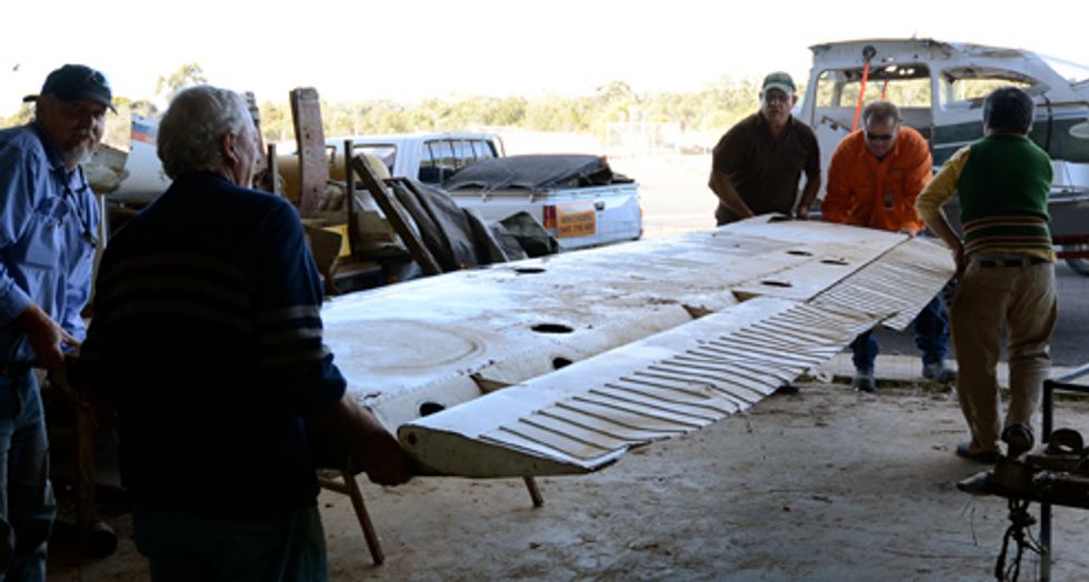 Bottom photo: Sean Cordeiro and Claire Healy; dismantling of Cessna airplane for 'Par Avion', 2011; courtesy of Frey Norris Gallery