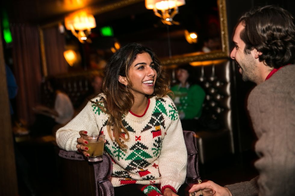 'Tis the season for twinkle lights, festive cocktails and, above all, the spirit of giving. Last week, at hot Union Square lounge Hawthorn, 7x7 teamed up with Maker's Mark and La Cocina for #ItsGoingToGetUgly, an ugly sweater party with a heart—proceeds from the event benefitted beloved local charity La Cocina.Donning their most saccharine, grandmotherly, and downright unfashionable sweaters, guests snacked on delectable South American food from Sabores del Sur, grooved to remixed holiday jams by DJ Proof, and hammed it up for the Snap Fiesta photo booth.