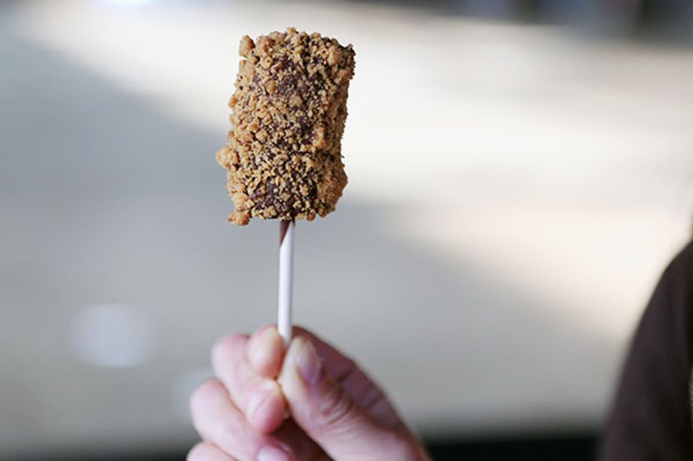 La Luna's customers clamor for tres leches. Rich vanilla cake soaks in three kinds of milk—evaporated, condensed, and regular—giving it a milky pocket that’s not quite wet, but goes a step beyond moist. At the festival, owner Elvia Buendia will also serve her popular red velvet with cream cheese frosting and smear of chocolate ganache (pictured), summery strawberry, and chocolate mint. For something more portable, try a cake pop. These orbs of blended cake and frosting served on a stick get dunked in white chocolate and sprinkles to resemble decorative golf balls.