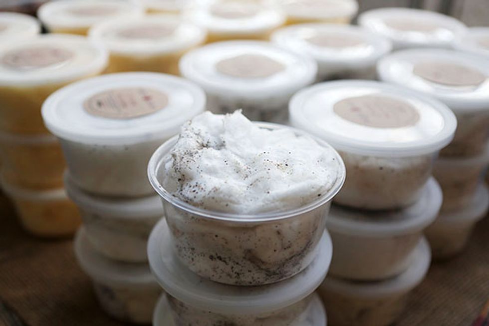 Put a wad of this grownup cotton candy on your tongue, and feel it melt almost instantly. Dots of cayenne fleck the light yellow Spicy Salted Mango which makes it look more menacing than it tastes. Biscoff Spread and streaks of ground Oreo-like cookies (Sugar & Spun uses the 365 brand from Whole Foods) look like black pepper riddling the Cookies and Cream flavor. Find pre-packed containers of the above as well as Peanut Butter & Jelly. Or, order yours spun on-the-spot in options that include Nuetella strawberry, chocolate black sesame, and matcha green tea latte.