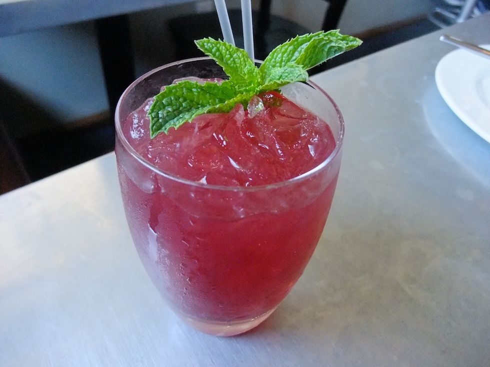 The Spanish Bramble is amontillado sherry, blackberry-mint shrub, St. George Terroir gin and soda. The bar has been experimenting with shrubs, a combination of vinegar, fruit, sugar, and sometimes herbs. The result is a sophisticated and not-too-sweet drink.