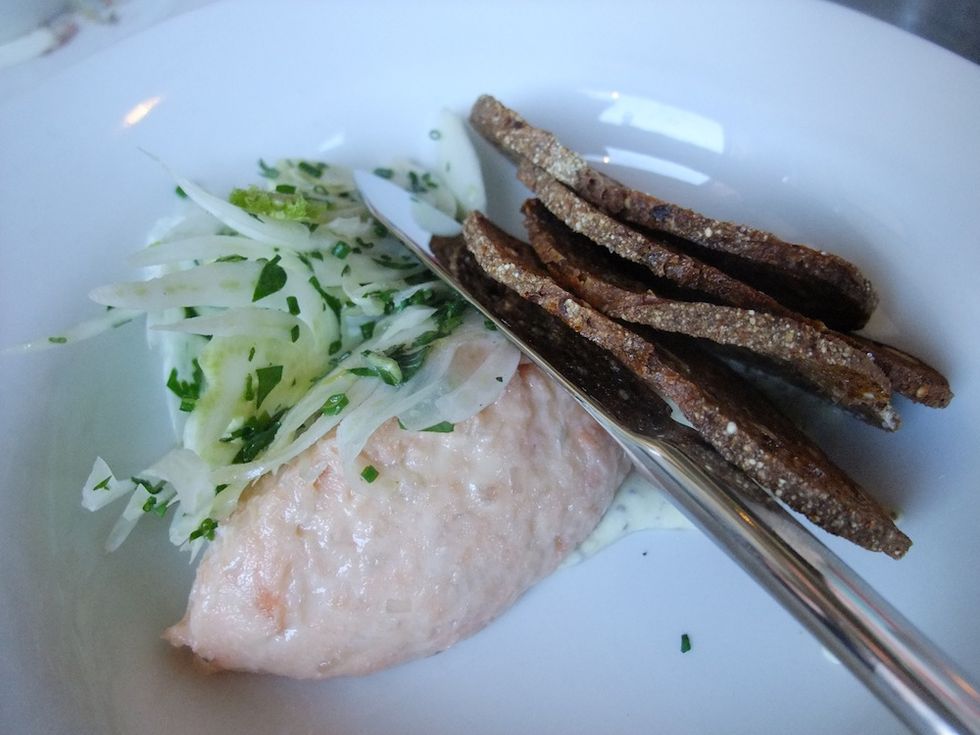 Sherry offers great versatility and is very food friendly, working well with the smoky flavors in some of the aperitif bar bites–notably the house smoked trout rillette ($7) with shaved fennel and mustard creme fraiche.