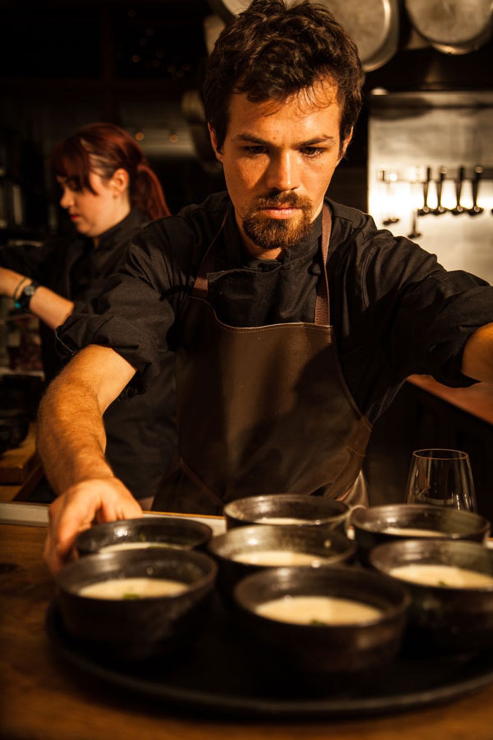 GB: The head chefs of the Guild are Ty Cox and me. After graduating from the California Culinary Academy, I did my externship in Italy, followed by stints at restaurants such as Incanto and Cortez. I'm currently the sous chef at Contigo. Ty also graduated from the CCA, and has worked at restaurants such as Foreign Cinema, Slow Club, and Contigo. He is currently working at Smoke Stack BBQ. I met Ty at the California Culinary Academy in 2004 and we've been friends ever since. We recruited our longtime friend and co-worker Lauren Giblon to help out in the kitchen, and our girlfriends, both servers, run the floor staff.