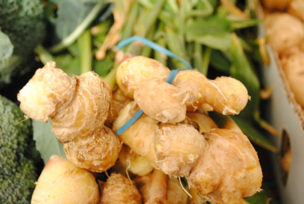 Once a cold strikes, fresh herbs like lemon verbena and mint can be used to make teas. Just add a little Eucalyptus honey from Marshall’s Farm Natural Honey and a slice of Meyer lemon to instantly sooth a sore throat. Chest congestion can be eased by adding a small dash or two of dried cayenne paprika from Happy Quail Farms to a mug of hot water with a squeeze of lemon. Fresh ginger, which can be found at the Chue’s Farm stand, is also great as an additive to tea or a steamy bowl of soup, and freshly grated horseradish from Knoll Farms can unstuff even the stuffiest noses.