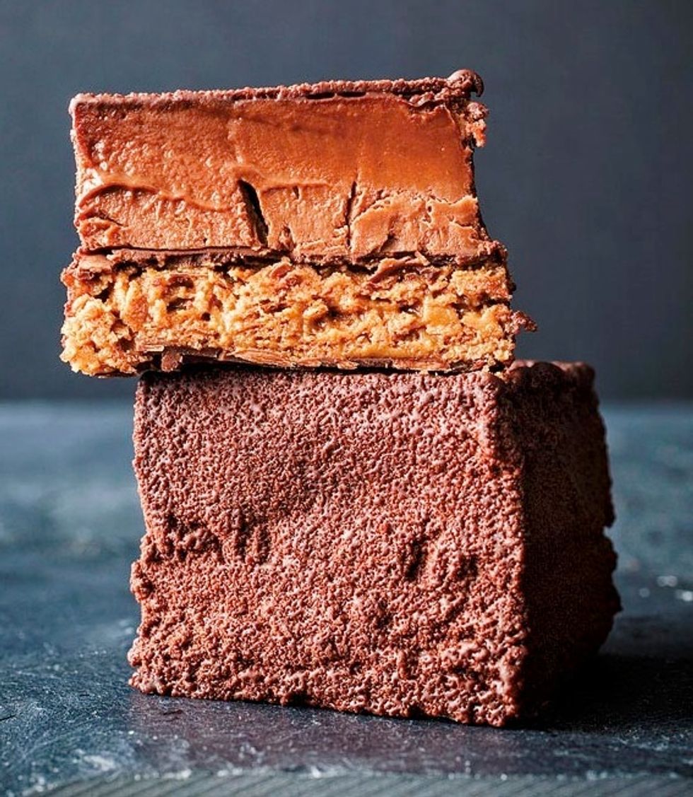 Chuck Siegel roasts and caramelizes his own hazelnuts for this praline cake layered with mousse.