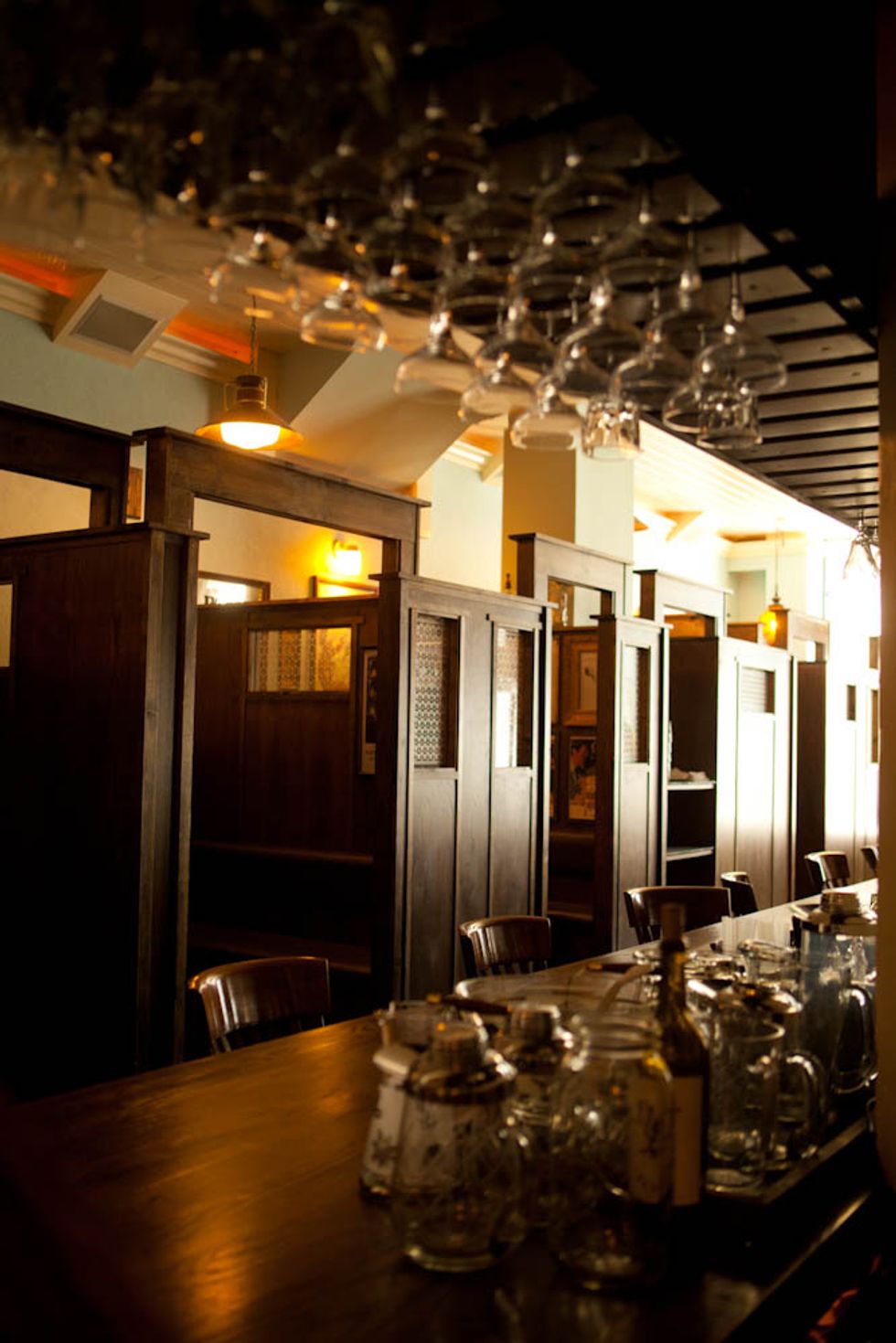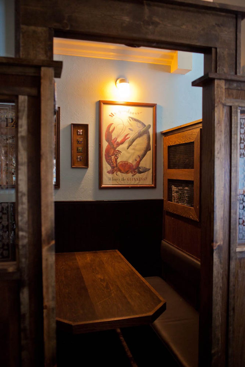 The extra effort of booking a table at Tradition gives drinkers access to two major perks. The first is getting to sit in one of the snugs, a style of high booth that was originally invented to allow women to drink in bars without fear of offending propriety. (In the older European pubs where they've survived, they've since become popular for romantic assignations.) Tradition's nine snugs are each themed around a different style of bar or drinking culture, including dive bar, tiki bar, speakeasy, English pub, and grand hotel. Though each snug's decor is fairly minimal at this point, with a couple of framed vintage liquor ads to represent the style, the owners plan to add more tsotchkes as time goes by. (The Irish pub snug is the most tricked-out at the moment, as one of the owners took a vacation to the Emerald Isle shortly before opening.)