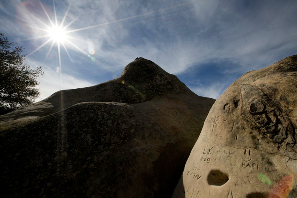 You can access the area via the nearby Live Oak Campground, this short scramble of a trail runs about a quarter-mile to the sandstone formations and Sentinel Rock. Climb up the sandstone monolith via the carved steps and cable handrail.