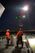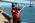 A diver is dropped down onto the deck of the Coast Guard boat.