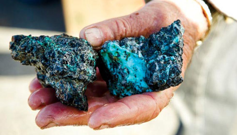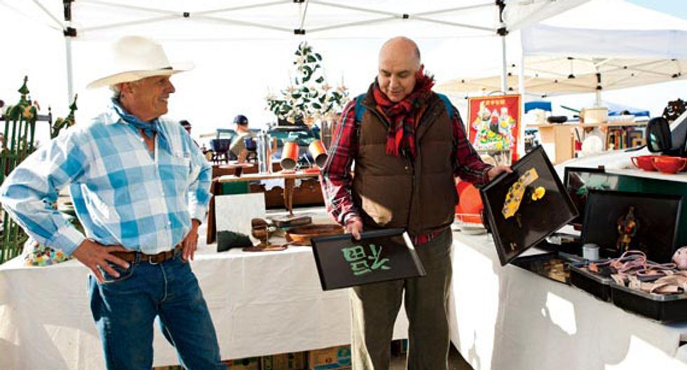 2. Vendor Joel Dressler would have fit in well during the Gold Rush. He always brings unusual items to the market. McKinley buys two turquoise-encrusted rocks for $5.