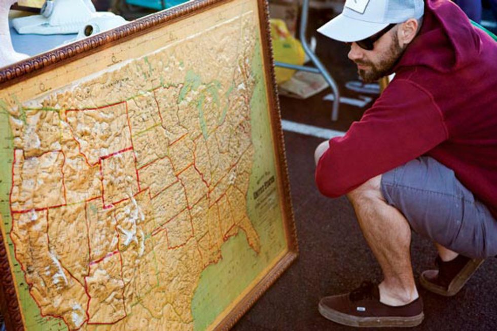 6. Ishikawa and Hipskind love the schoolroom charm of this 1907 relief map of the United States at Jim Jones’ booth. The asking price is $250, but Ishikawa and Hipskind purchase it for $225.
