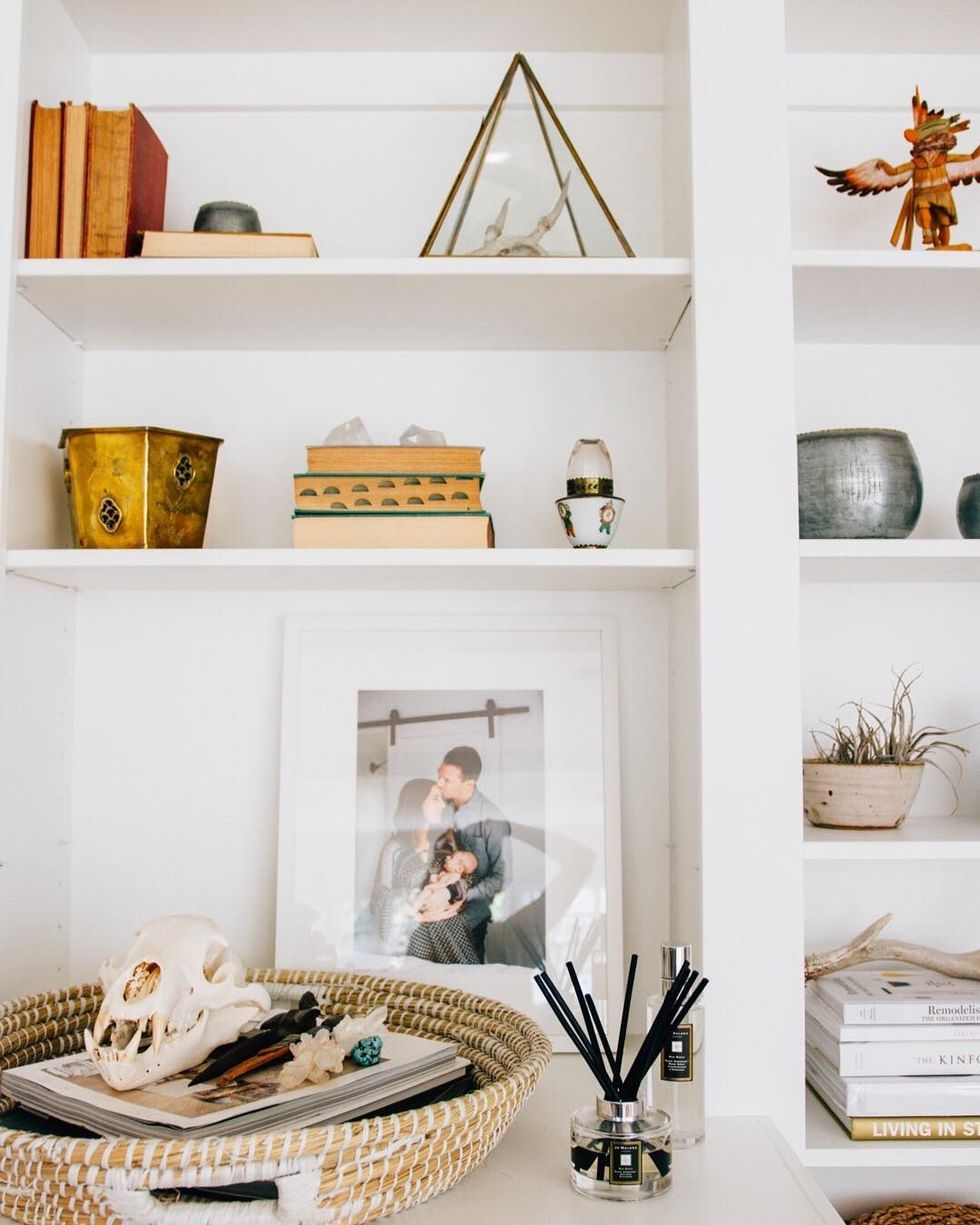 Lund collborated with her friend and interior designer Deborah Costa, of Sacramento-based Design Alchemy, to remodel her 1940s home in a style she describes as "modern eclectic." The open floor plan is dressed in neutral tones and feels minimalist but warm, speckled with carefully chosen pieces that hold special nostalgia, many of them collected from her travels, as well "some pretty great family heirloom pieces of furniture that bring such sweet stories to each room. I love a good conversation piece," she says.