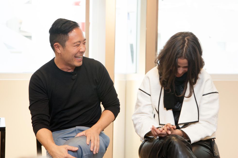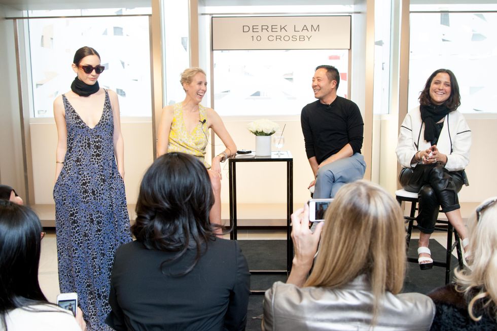 The fourth floor of Neiman Marcus was a sea of black, leather, and sky-high sandals on Thursday, March 27, for the fashionable reception of hometown hero, Derek Lam, to celebrate the latest collection for his eponymous line’s hipper, younger sister 10 Crosby. Along with the impeccably cool Liz Giardina, the brand’s VP and lead designer, Lam sat down with 7x7 Fashion Director Lauren Goodman to discuss SF style, inspiration, and his favorite pieces in the collection (ahem, statement outerwear).