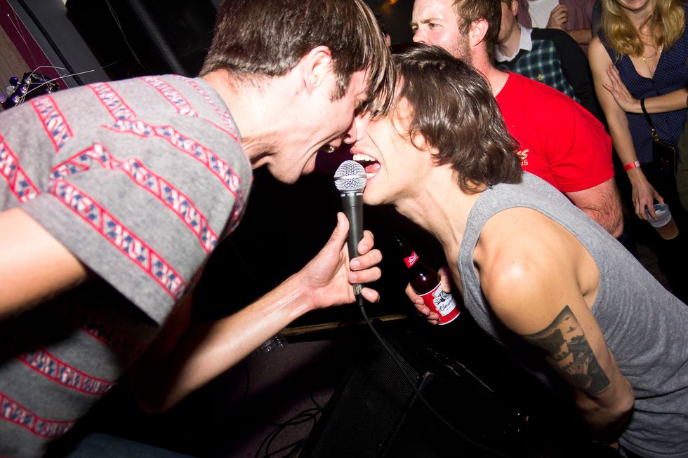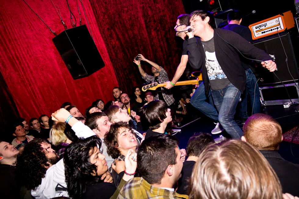 This night had a certain sense of nostalgia going for it, thanks to Bay Area hardcore stalwarts Comadre and Ceremony, who brought out the scene kid in all of us and gave us a chance to forget our 9-to-5 lives for one blissful, screamy night. It was almost strange seeing Comadre high above the audience on a proper stage (they usually eschew the stage for playing on the floor amidst the crowd), but they delivered a set full of old-school gems and their more hook-laden, newer material. SF's Terry Malts broke the ice by ripping through their buzzsaw pop anthems (and debuted some new stuff!) at breakneck speed and a glint of mischief twinkling in their eyes, as always. At one point, a fake rep from fake corporate sponsor Subway jumped on stage and yelled at the band for not plugging their $5 FebruAny sandwich deals. They then threw actual Subway sandwiches into the crowd (and the crowd threw them back), and ended their excellent set 30 minutes later by saying "THANKS EVERYBODY, EAT FRESH." What can we say about Rohnert Park's Ceremony? Though their sound has evolved in the past years to a more mature, melodic version of their hardcore roots, that didn't stop the bodies from flying, the mic being commandeered by zealous audience members on the regular, and smiles and good vibes all around. –Laura Mason
