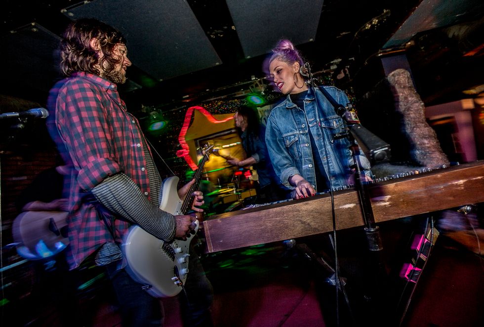 While most of Blasted Canyons' set was overshadowed by my cravings for pupusas across the street, their momentary meltdown did grab the room’s attention. They kept complaining that they couldn’t hear enough of themselves. Hether Fortune (also of Wax Idols) grew so irritated that she eventually threw down her guitar and left the stage (they were trading instruments the entire set, in a display of multi-talentedness). The band members continued without her for a bit, while Fortune awkwardly watched from the sidelines. She then burst back onto the stage, high on a second wind (or maybe she didn’t like the fact that they seemed fine without her), and anticlimactically finished up their set.
