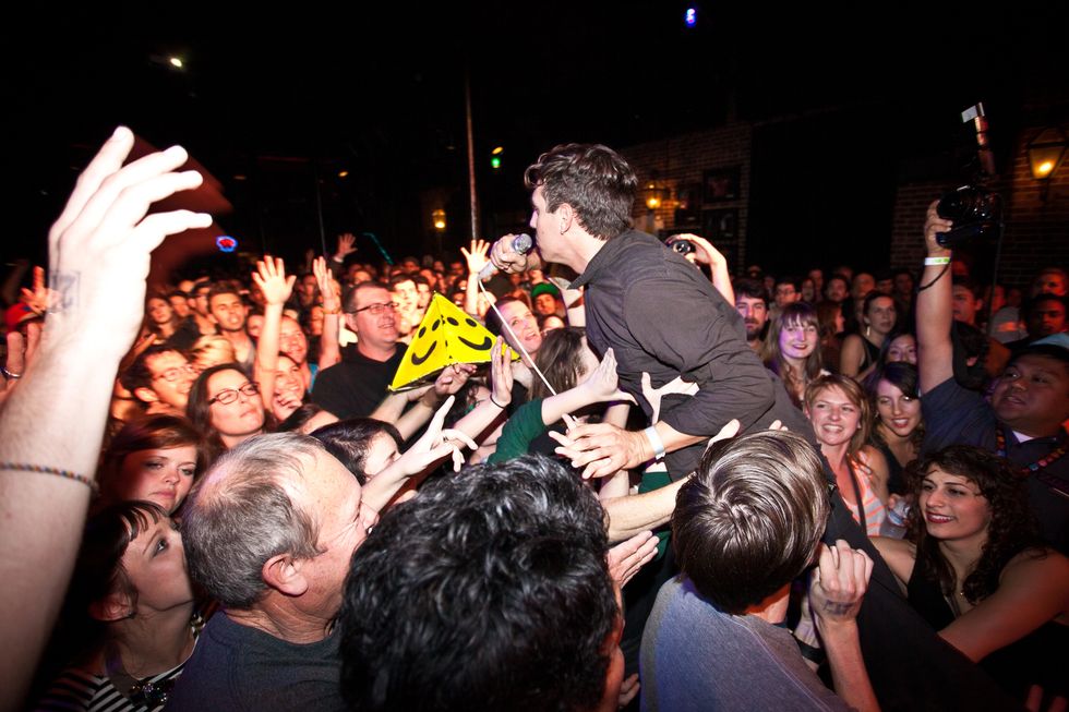 Sonny and The Sunsets had BOTH packed deep. I do love his classic, beat-up looking Fender Mustang and its ability to command attention with simple chords strummed in time with driving beats by drummer Kelley Stoltz. And of course, there’s the storyteller side of Sonny, which is a large part of his charm, and what makes him such an engaging live act. The highlight of the night? When Sonny tossed merch t-shirts and assorted records into the audience he said “here, pass these around.” I may have pried it out of a drunk and confused hipster’s hands, but I went home with a new record that night. Sounds real good! –Andre Torrez