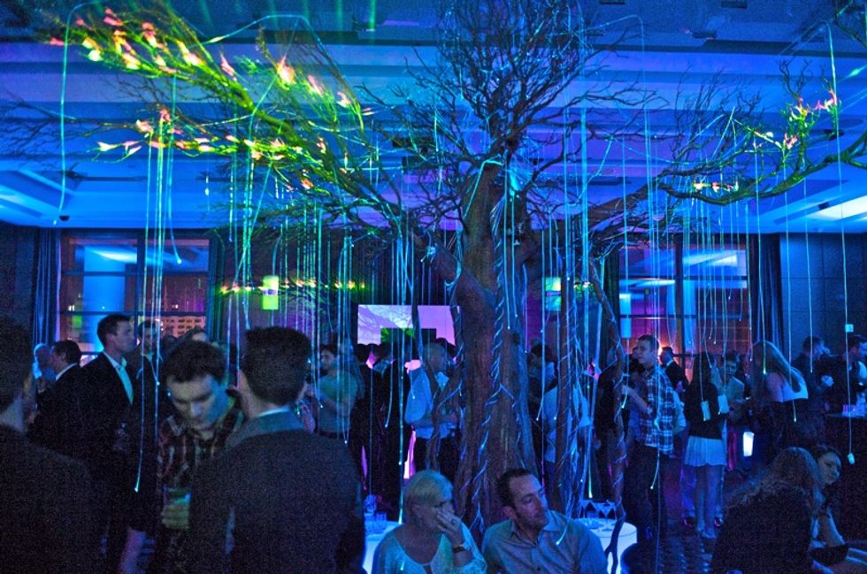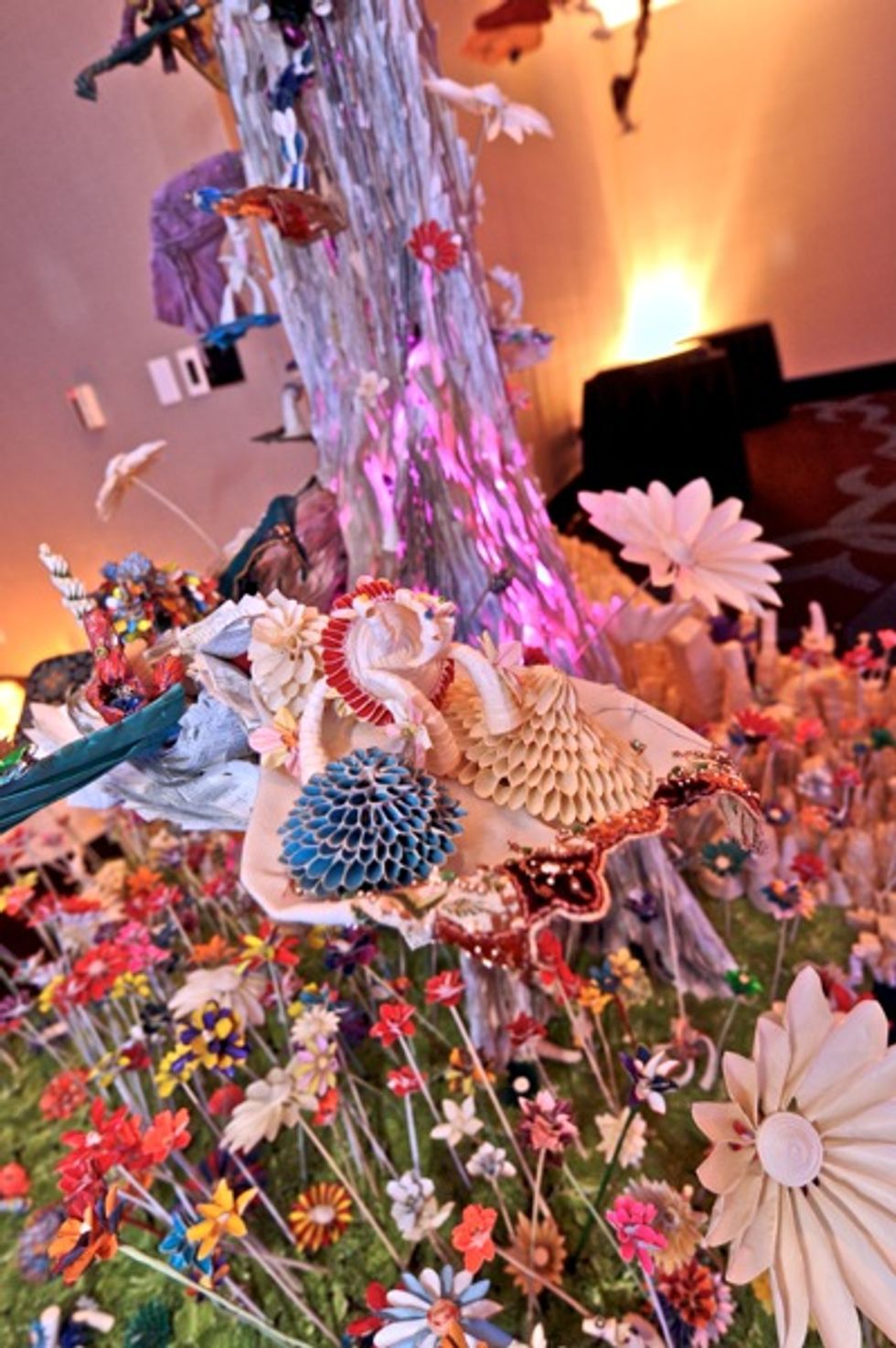 The W Hotel was transformed into a sumptuous, enchanting artscape through cutting-edge lighting technology provided by Entire Productions, and the iconic "tree of life" provided by Blueprint Studios. More than 700 guests enjoyed cool beats from DJs Dylan McIntosh and Sebastian Vinet, generous complimentary cocktails, and eye-popping Tapigami—a gigantic art installation made entirely with masking tape!
