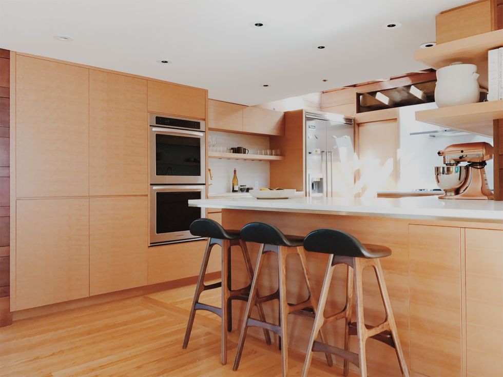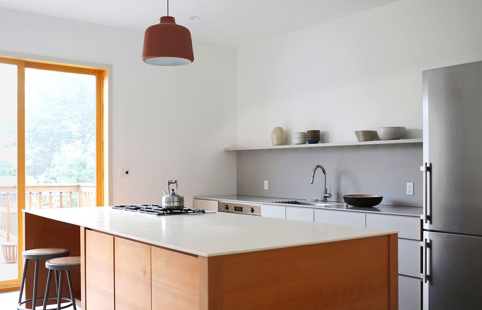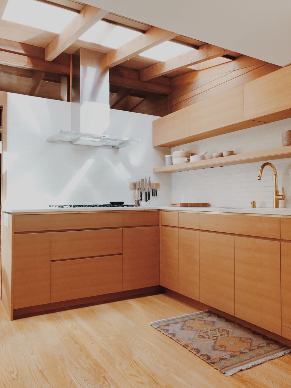 Warm tones with natural light are a key element in St. Peter's work, particularly in this Berkeley home with cabinetry from Small Works.