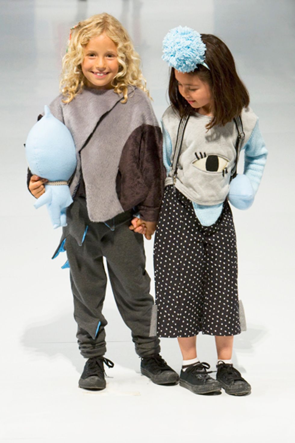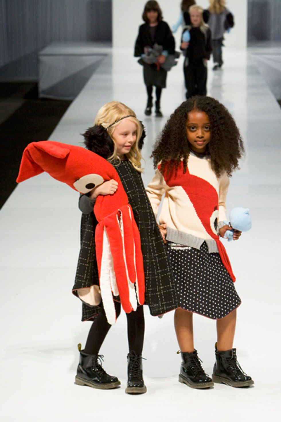 The collection that brought down the house was Sindia Lin’s quirky children’s wear. Her theme, peek-a-boo, was translated into oversized eye prints on sweaters and stuffed toy squids that models cradled as if they were the season's hottest it-bags. It was so imaginatively styled and executed, we wouldn’t be surprised if a chic French boutique came knocking.