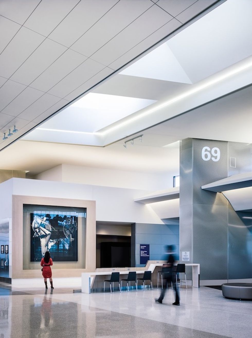 San Francisco International Airport gets another gorgeous upgrade with its renovated Terminal 3 Boarding Area E, which opened January 28 for flight. Gensler, the SF-based firm behind Terminal 2's clean cladding and artistic commissions (cue the floating sculptures of Kendall Buster and Janet Eichelman, commissioned by the San Francisco Arts Commission through the city’s percent-for-art ordinance), took the reins again for this project, which also targets LEED Gold certification and interactive design elements.