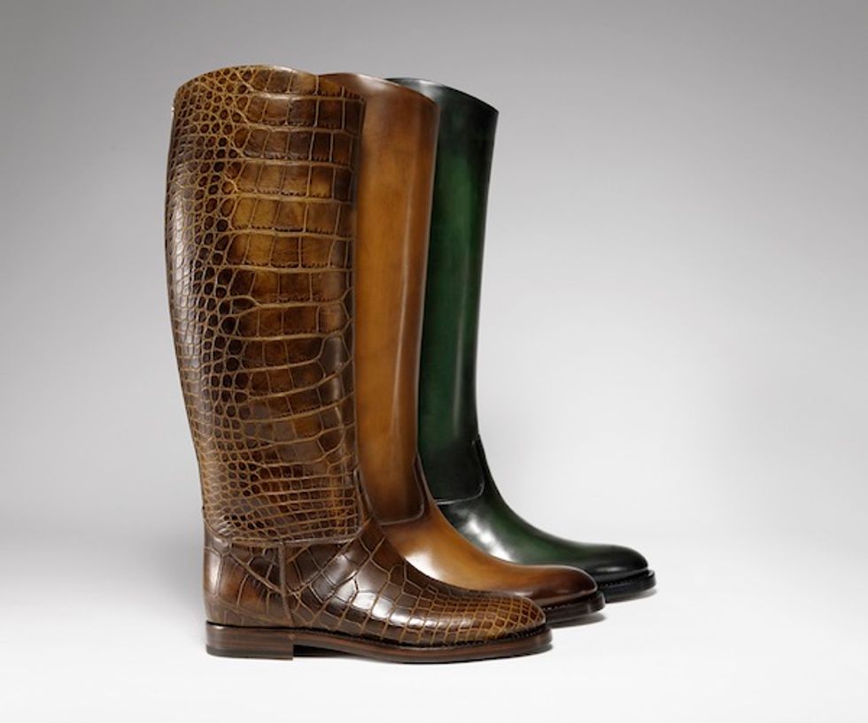 Gucci motifs make celebratory cameos; the Crest on zip closures and tassels, bamboo detailing on wallets, the original Gucci green on the inside of moccasins. Meanwhile, Gucci's equestrian roots surface via horse-riding boots and the classic horsebit loafer. And that elegantly pungent Italian leather is throughout, even on timepieces.