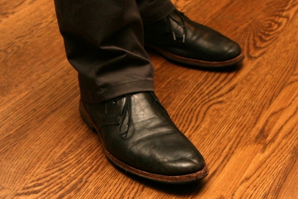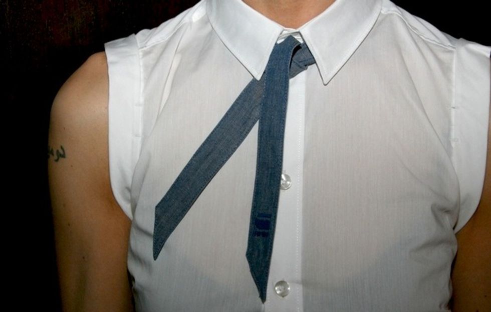 What she wore: Shirt and pants by G-STAR, purchased from the Chestnut St. store; Chambray tie, unknown; Sartori laceless oxford shoes, from Gimme Shoes; Matthew Campbell Laurenza ring, purchased in NYC; Vintage watch, purchased from a NYC street vendor; Wrap bracelet, gift from friend; Haircut by Akemi Tamaribuchi of diPietro Todd Salons.