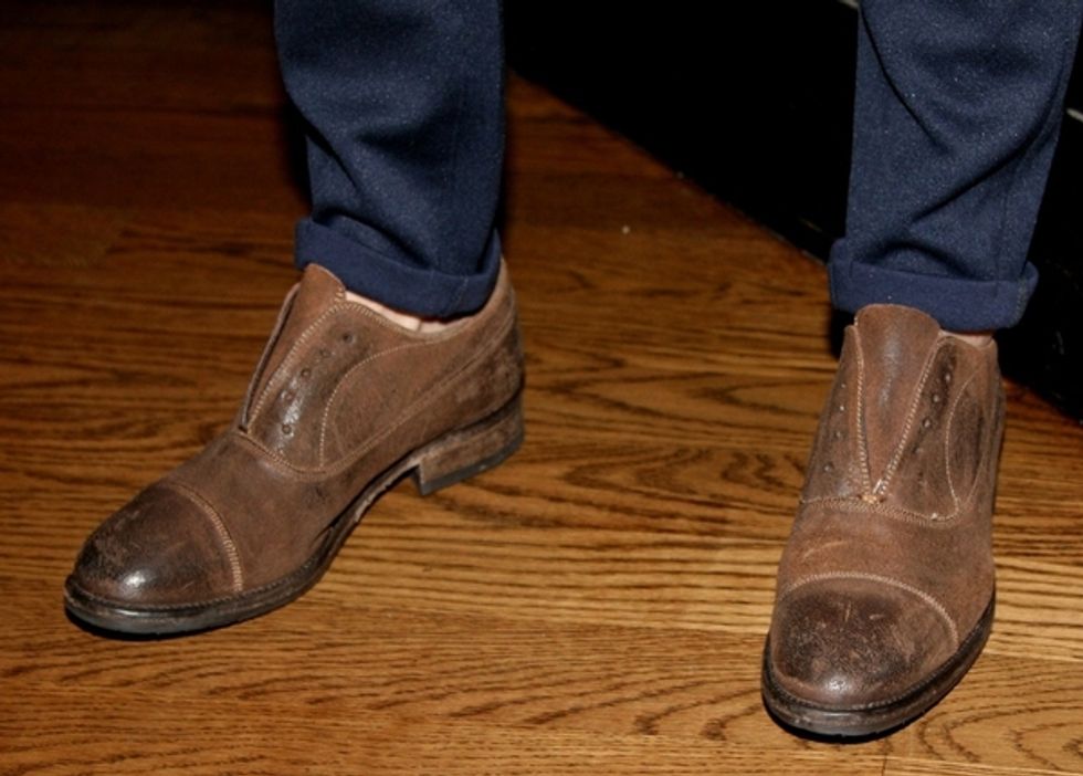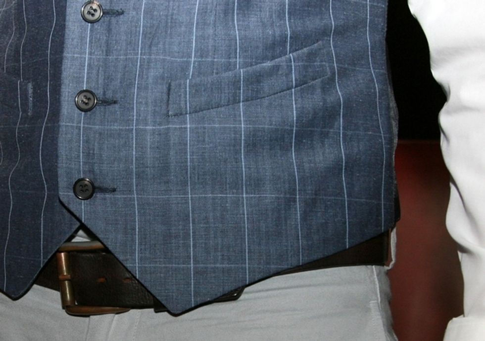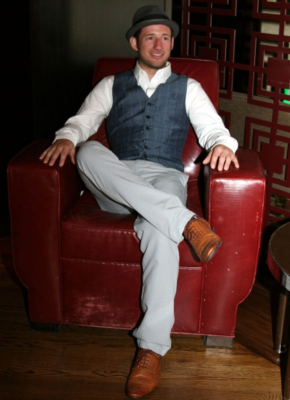 What he wore: Goorin Bros. hat; Banana Republic shirt; Onassis vest and pants; Ted Baker shoes.