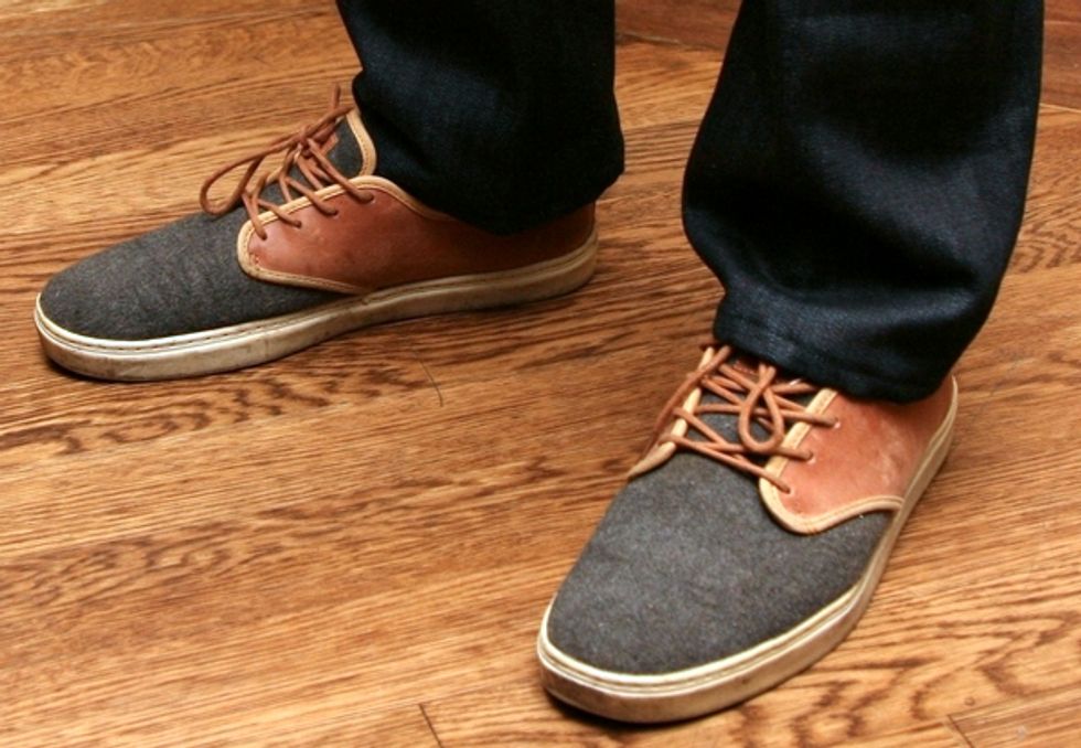 What Brett wore: Shirt, jacket and pants by Taylor Stitch; Vans two-tone shoes; Moth tattoo by Megan Wilson at Analog Tattoo in San Jose.