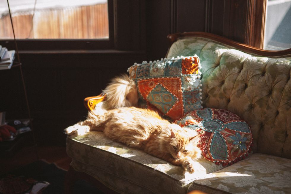 The couple sourced the majority of the apartment's pieces from the Alameda Flea Market and Mission neighborhood boutiques. Marie and Maher traveled internationally for nearly a year, and souveniers of their travels pop up in corners of the apartment, like the throw pillow covers from India that their cat, Banksy, has claimed as his own.