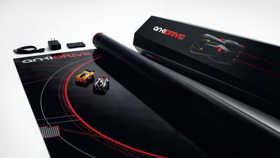 Players effortlessly pair their tiny, electric toy cars to compatible iOS devices and help them accelerate around a large, vinyl sheet of race track. But here’s the kicker: the cars are no longer confined to their specific lanes. Players and their AI-driven counterparts can weave their cars in and out of lanes, seamlessly passing others on the track with ease. It’s all controlled from sensors in the cars so they’ll never crash into each other. It's one of the coolest things we've seen from a toy.
