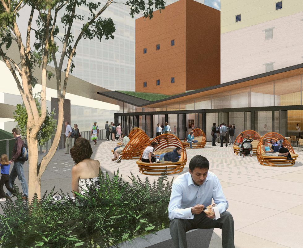 But an interesting thing happened on the way to a new terminal. The state sold the parking lots that ringed the sites to pay for the construction—and developers eager to make their mark (and a lot of coin) hired notable architects who created a bevy of elegant, artistic, and, dare we say, important buildings (to land a deal, developers had to submit proposed designs). And to sweeten the pot, the property barons—Tishman Speyer, Boston Properties, and Related are just some of the heavy hitters on board—had to agree to include affordable housing, retail space, and green areas. The result is a civic-minded urban planner’s dream: Broad sidewalks with plenty of trees; a vibrant mix of shops and restaurants; walking trails and bike paths that crisscross the zone; and modern green space concepts—one park is being compared to New York City’s High Line, and the other is a five-block stretch under the bus ramp with groovy features, such as porch swings suspended from support beams). And there’s lots of housing—35 percent of which is set aside for low- and middle-income families—terraced housing, ranging from human-scale townhouses to high-rise buildings, promising an area that will be open and filled with light. Have you spotted the unicorn yet?
