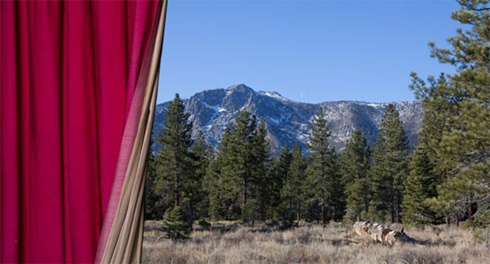 The art world has a wonderful tendency to expose a variety of attitudes, sometimes ones that are diametrically opposed. That is the case this weekend, as the rosy, utopian architectural fantasy in Patricia Araujo’s Tomorrowland Today opens not far from The Brinksman, Cleon Peterson’s collection of blood-red, dystopian nightmare images. In between, look forward to a clever reanimation of landscape photography and a feature length melodrama, for those courageous enough to dive in.