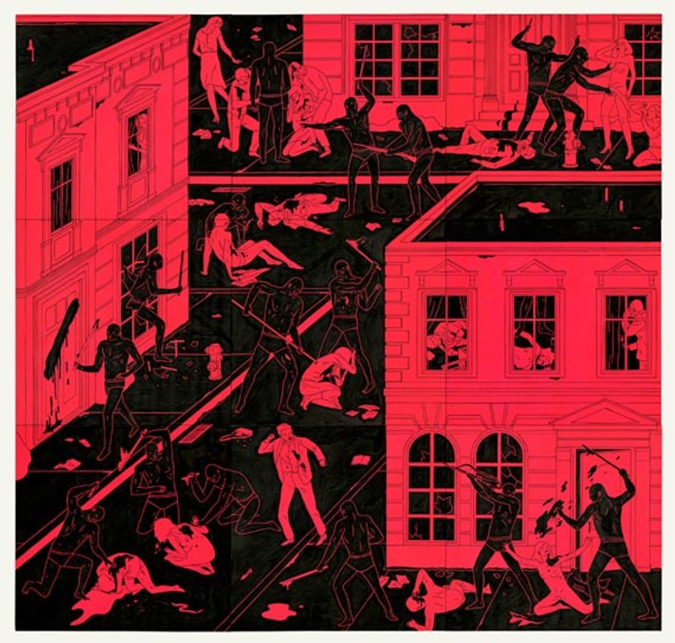 There are some pretty grim anxieties tucked away in the collective unconscious. To venture a guess, the job of articulating them is one that most people are glad not to have. Los Angeles-based painter Cleon Peterson can’t seem to help himself, though, and the resulting canvases are as dark as they are compelling.