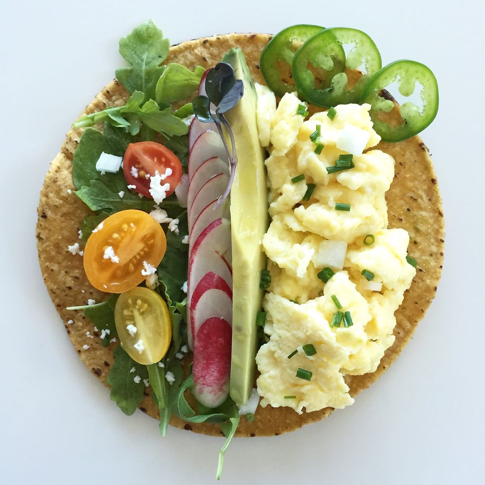 Pancakes, scrambled eggs, avocado toast, and fresh squeezed orange juice. The only stipulation is that this meal must be eaten in bed with Netflix on.