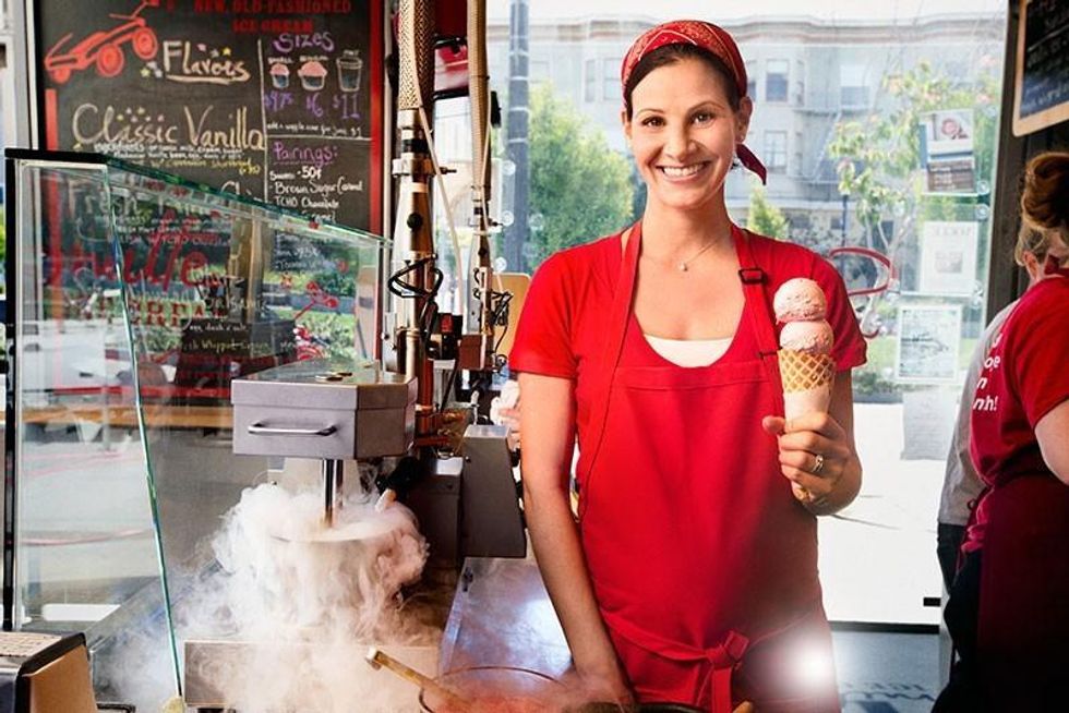 As many people in the food industry do, Fisher began by selling her product out of the back of a truck—well, a little red wagon to be precise. In 2009, with the help of a retired NASA engineer, Fisher built Brrr, an innovative ice cream machine that runs on liquid nitrogen. She placed it on a Radio Flyer and she spent two years pedaling Valencia Street before opening her first shop, Smitten's flagship shipping container in Hayes Valley. Now, Smitten Ice Cream has eight locations around the Bay Area and is beginning to charm SoCal as well.