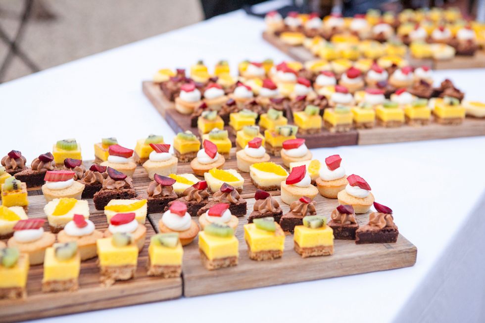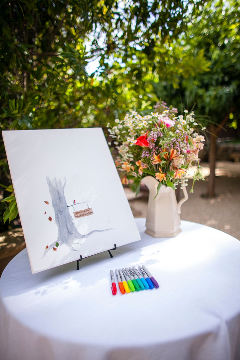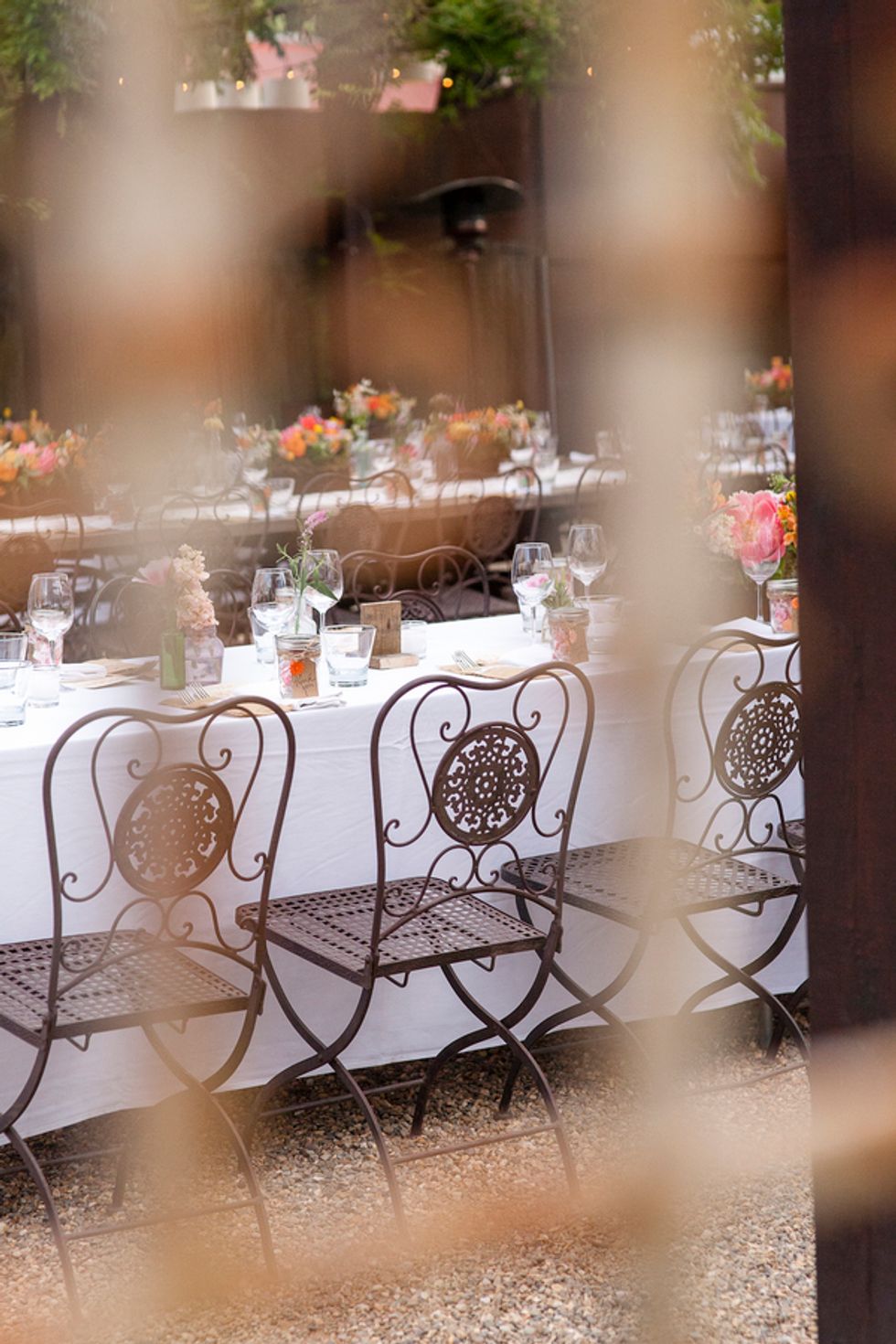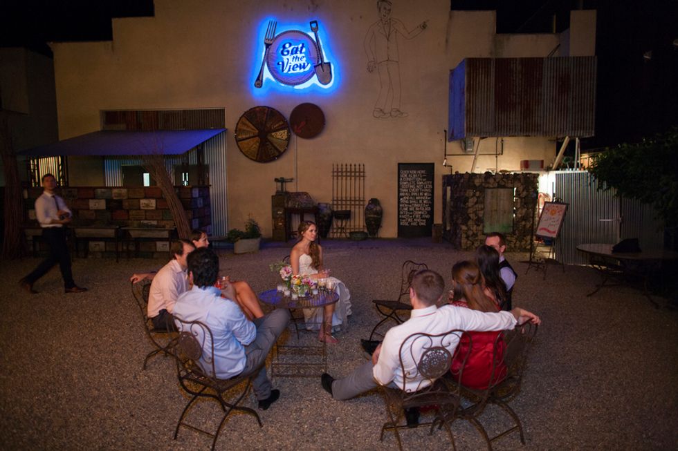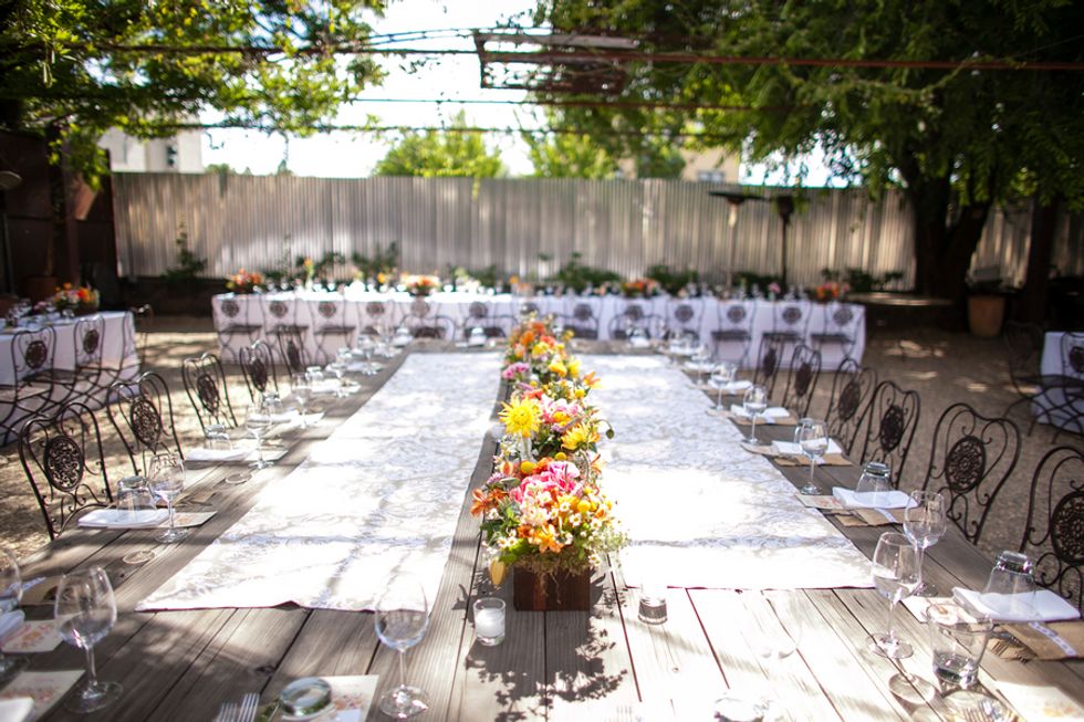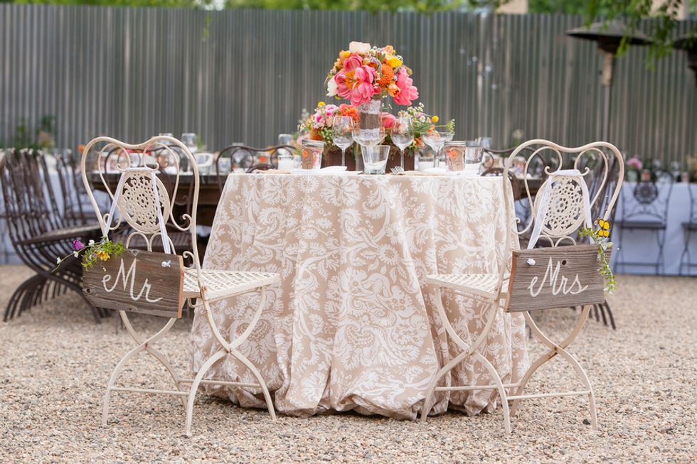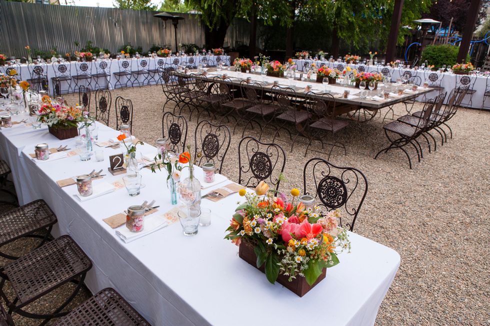 The entire wedding was an event to remember with brightly colorful flowers accenting the bride's lace gown and the champagne bridesmaids' dresses. The untraditional bride opted for sandals rather than heels, and a cupcake bar rather than a cake, but everything came together beautifully for a truly gorgeous celebration.