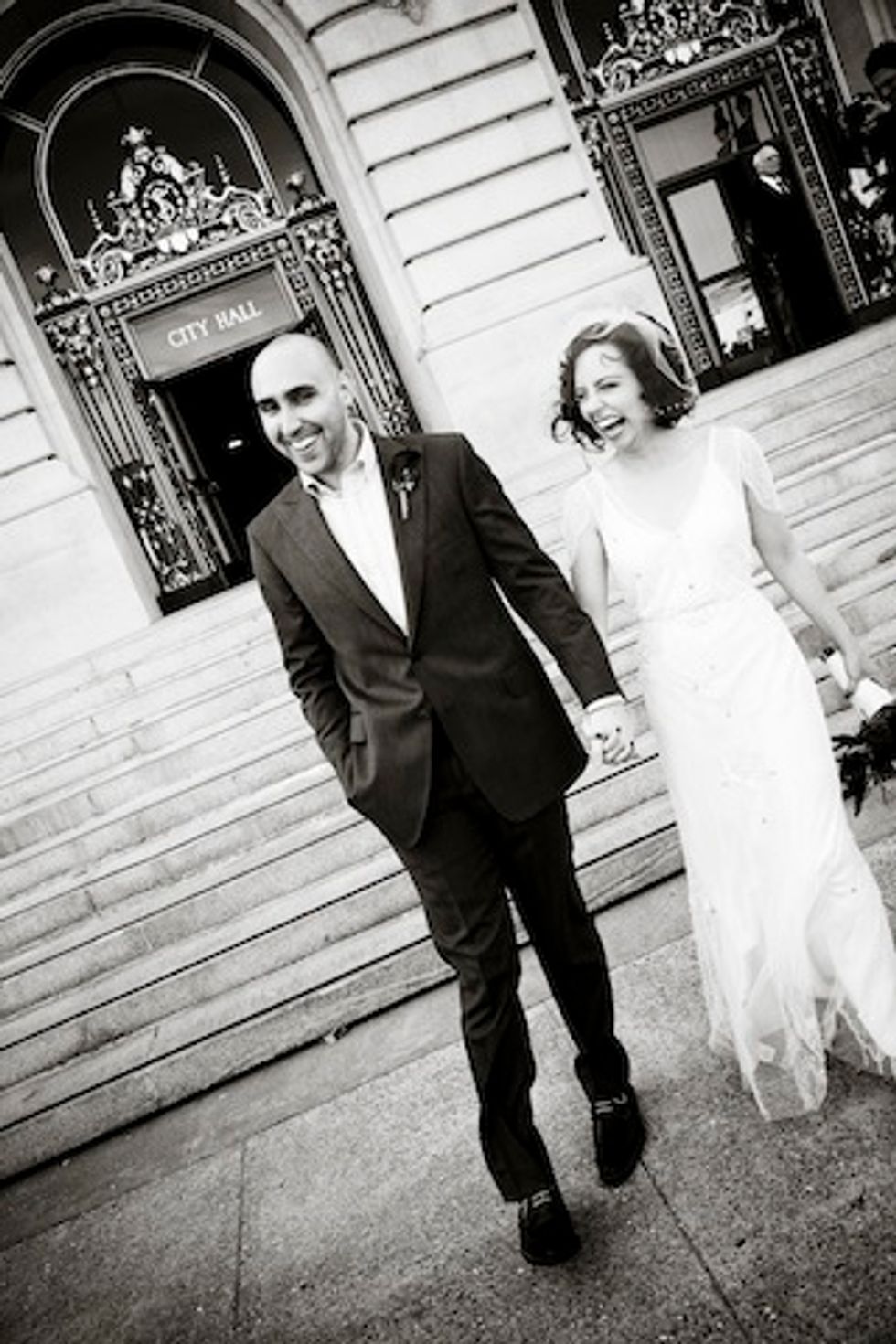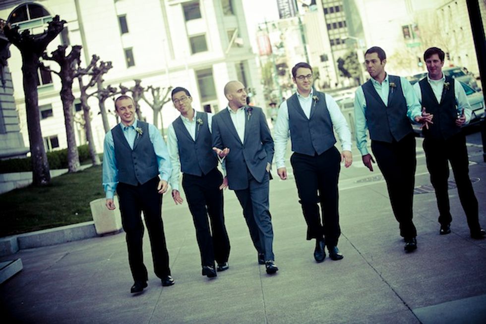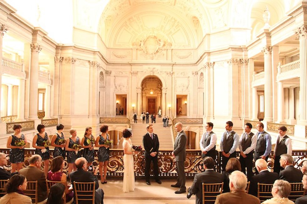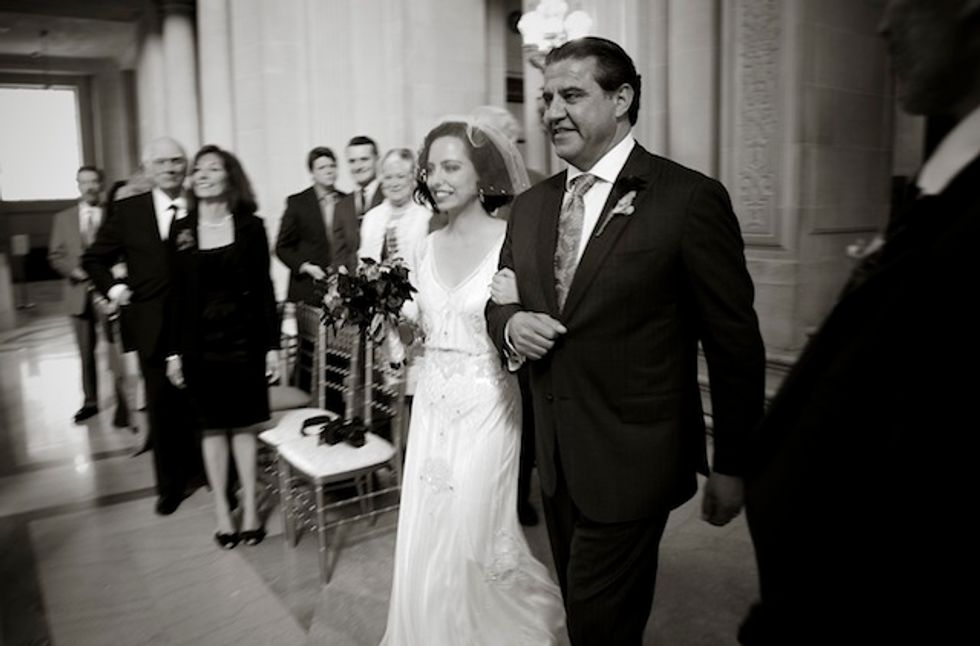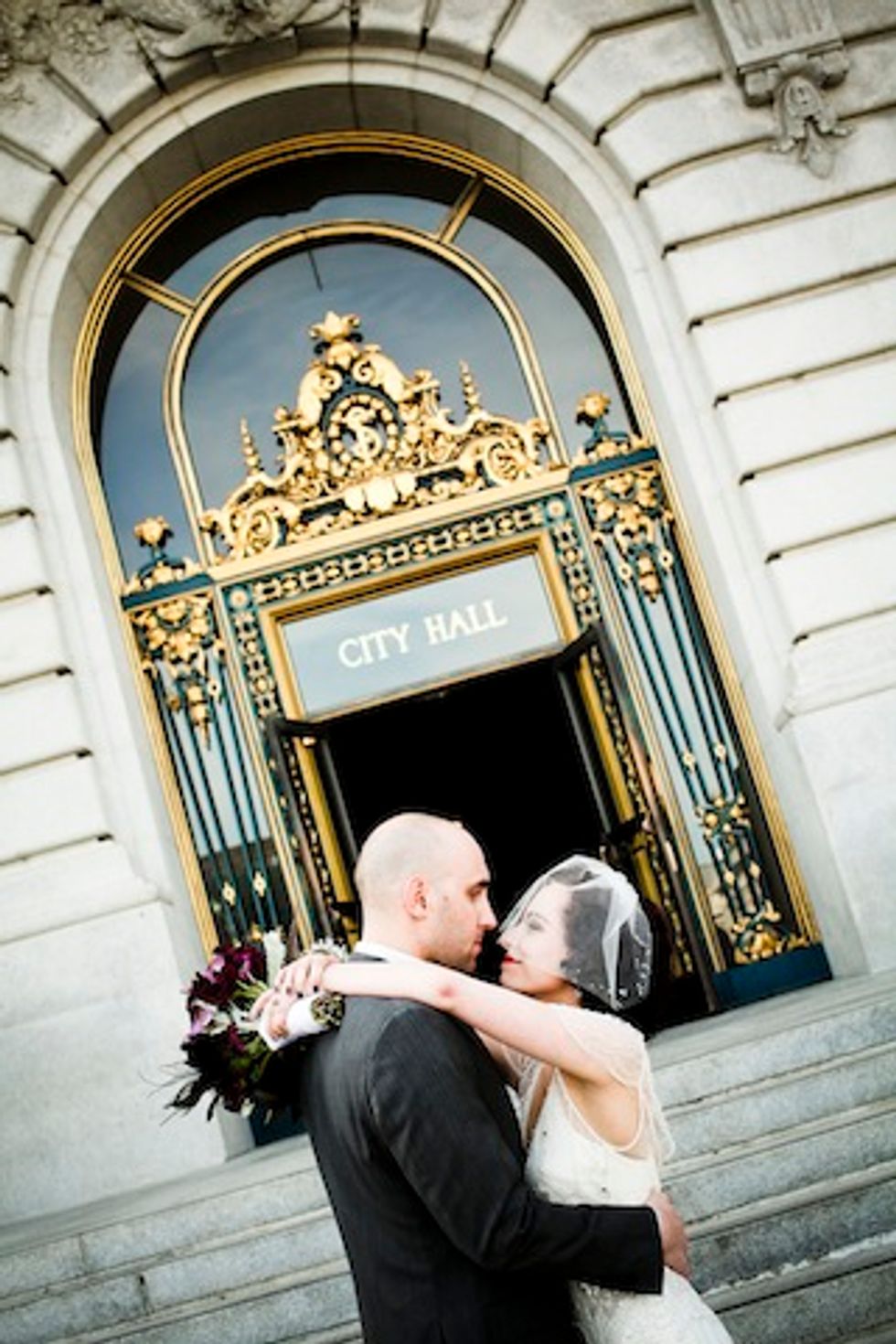 Nick and Victoria Gutierrez let their favorite decade inspire their ceremony at San Francisco City Hall. A relaxed 1920's-themed wedding evolved into a larger reception the following day where guests danced the night away at a "speak-easy" bar. Nick and Victoria wanted to immerse their guests in the San Francisco culture for the weekend so they planned trolley rides, Alcatraz tours, and dim sum tasting in Chinatown. The couple achieved the perfect balance between intimate family time and plenty of celebrating with their 200+ reception guests.