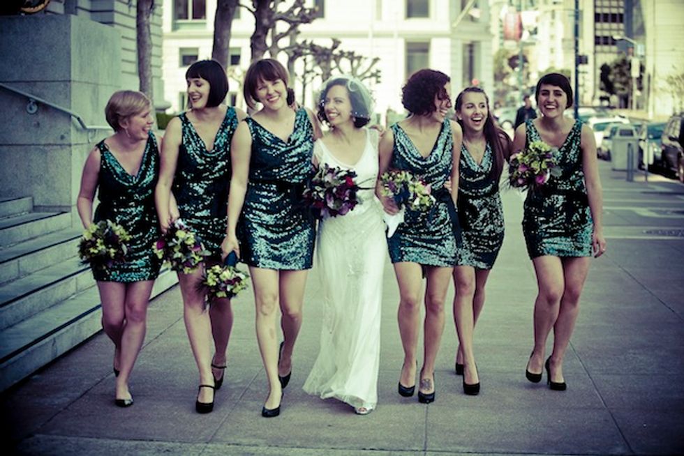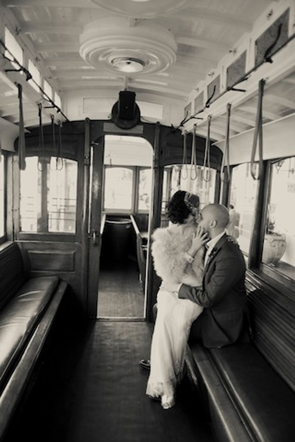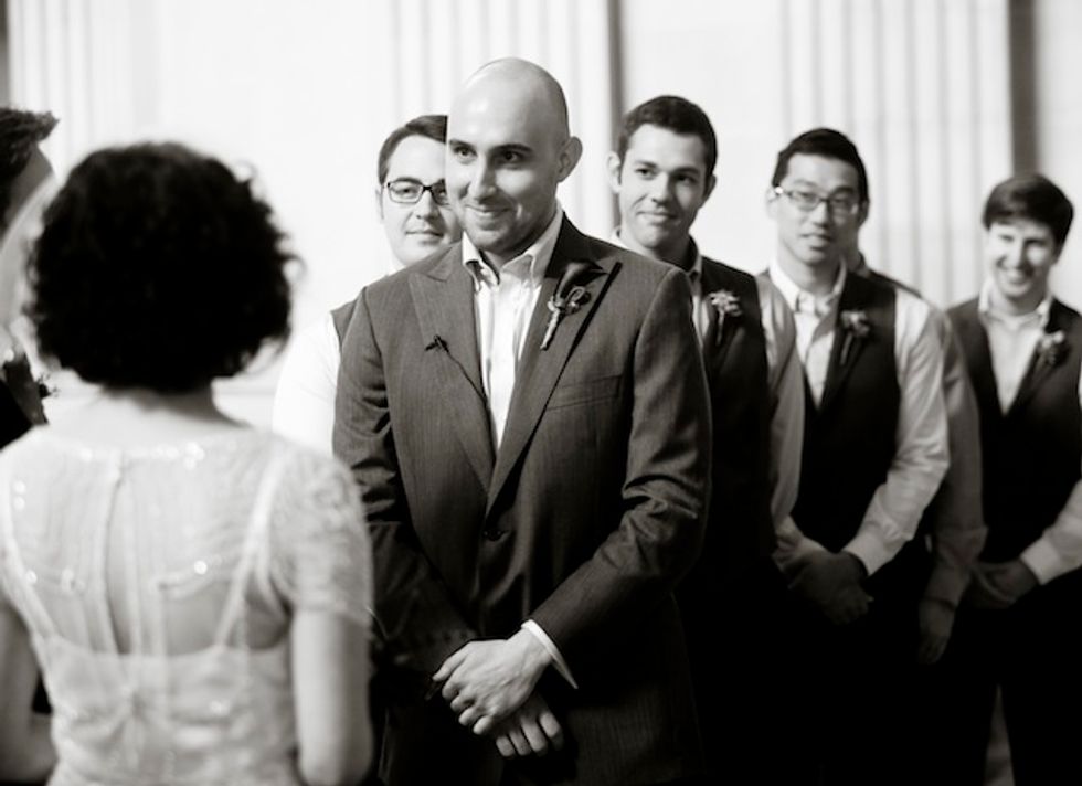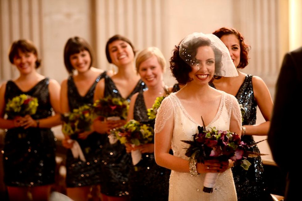 Nick and Victoria Gutierrez let their favorite decade inspire their ceremony at San Francisco City Hall. A relaxed 1920's-themed wedding evolved into a larger reception the following day where guests danced the night away at a "speak-easy" bar. Nick and Victoria wanted to immerse their guests in the San Francisco culture for the weekend so they planned trolley rides, Alcatraz tours, and dim sum tasting in Chinatown. The couple achieved the perfect balance between intimate family time and plenty of celebrating with their 200+ reception guests.