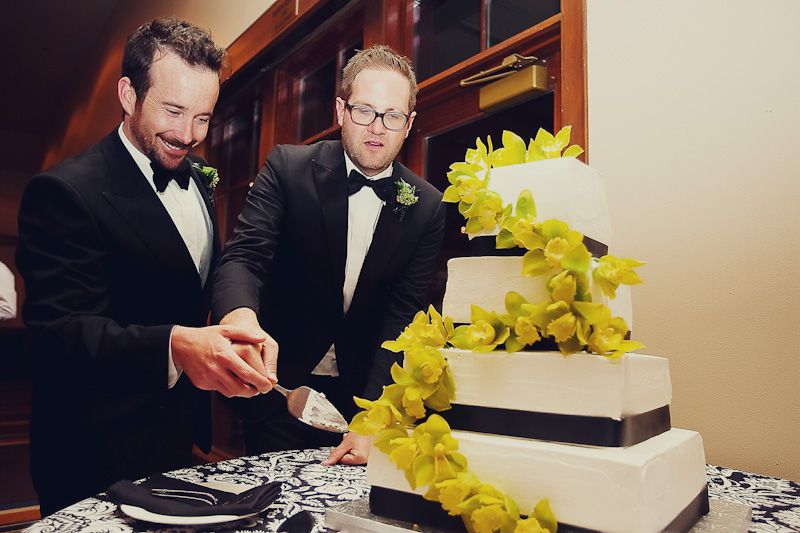 When it came to the wedding, the couple could have waited for Proposition 8 rulings to wend their way to a conclusion, but they decided that love can’t wait on the federal court. “Besides, we had been together for five years, and in gay guy terms, that’s like being together for 35 years,” says Zach. “It was time to get married.” The decided on an October 1, 2011 Lake Tahoe wedding (Zach grew up in the area) at Hyatt Incline Village.
