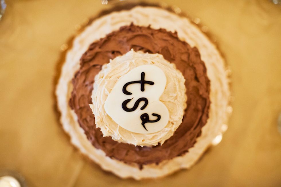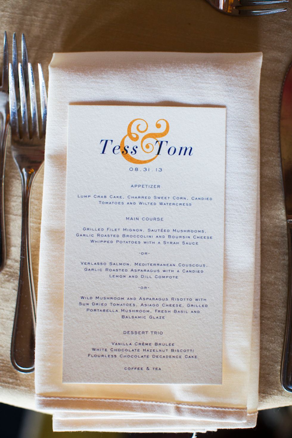 Tess and Thomas have the same initials (T.S.) and decided to incorporate that into the theme. The menus, thank you cards, and cake were all decorated with a cute TS2 emblem.