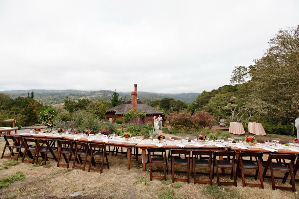 The couple got married in the small town of Bolinas, a hidden gem nestled between the lagoon and the ocean in Marin. The fairy tale setting was filled with ancient oaks, fresh lavender, and just a tiny layer of iconic Bay fog. The ceremony and reception took place at the Briarcombe, an architectural masterpiece that has housed many famous painters, poets and musicians, and served as the perfect backdrop for the couple's nuptials.
