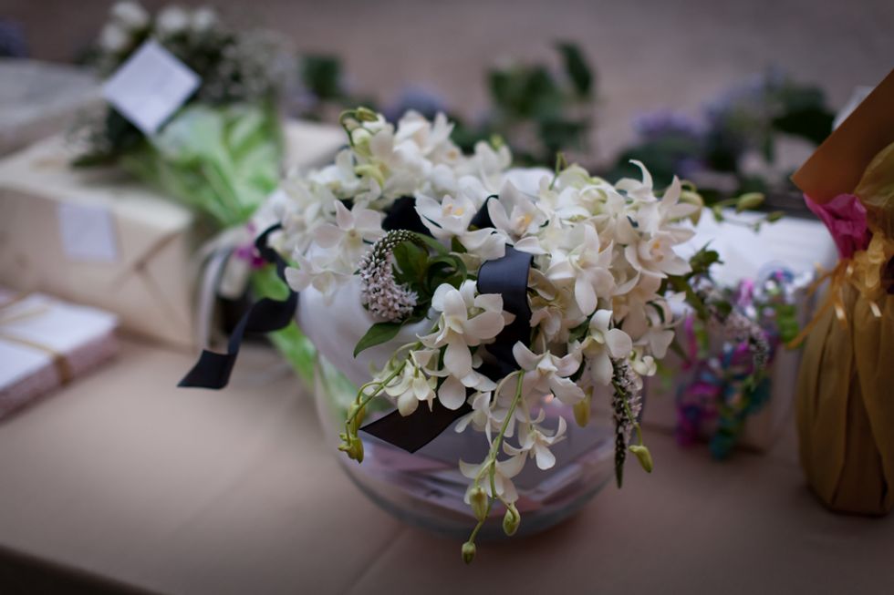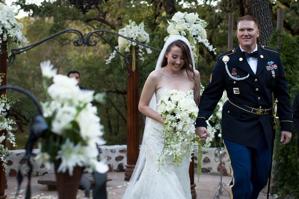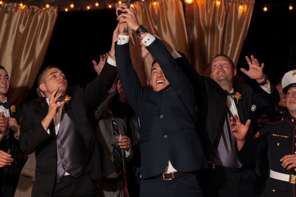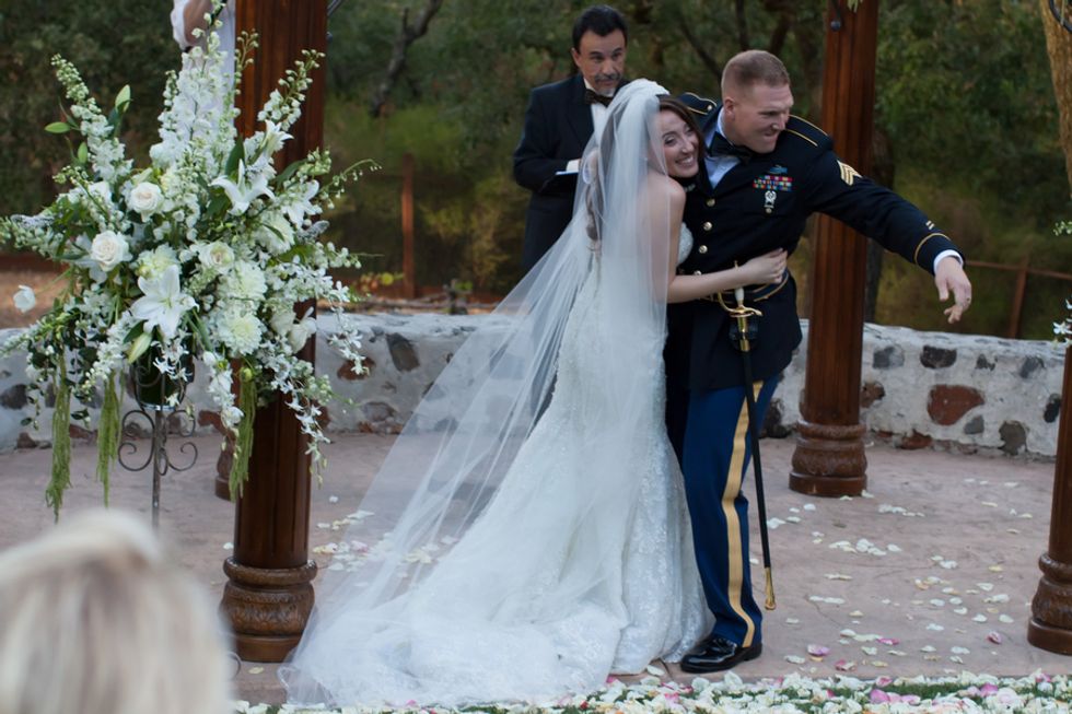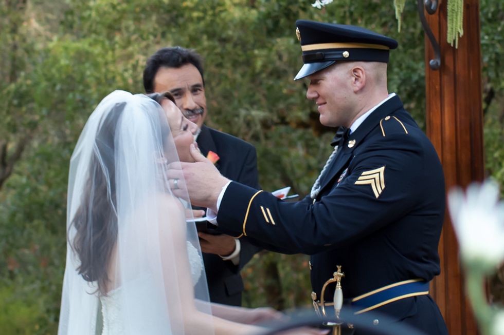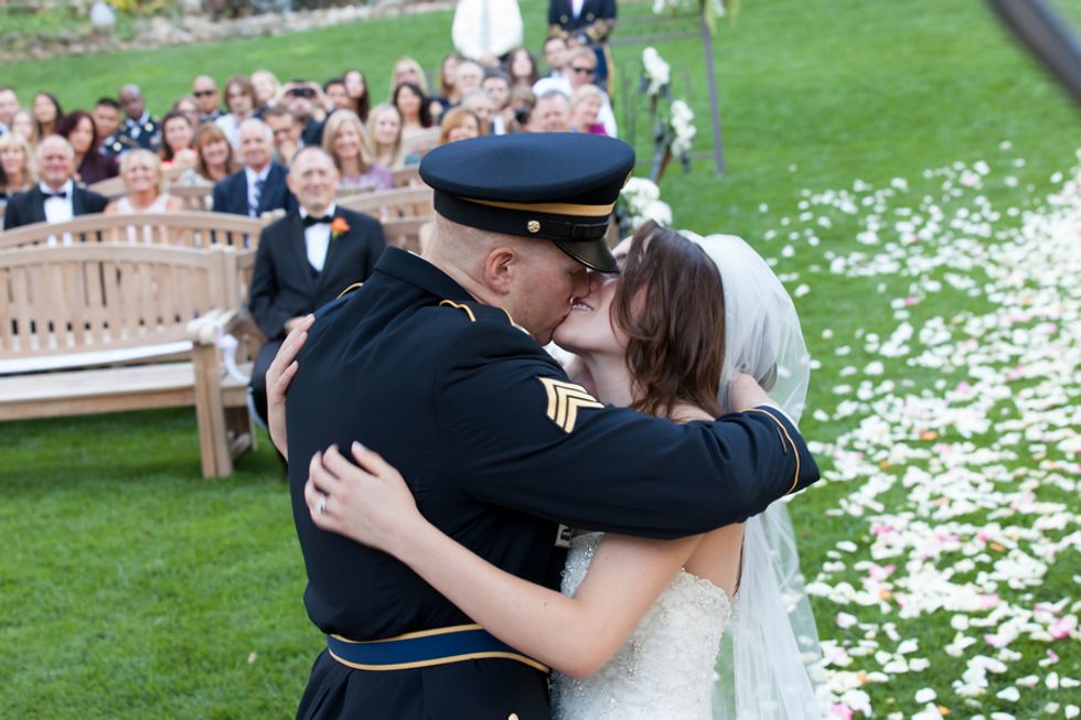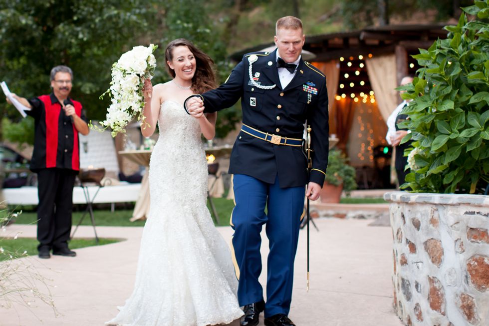Since Kristopher is in the service, he said his vows to Dana in full uniform and with a decorative sword that he later used to cut the cake. After a round of gourmet appetizers and dancing, guests partied late into the night with sparklers and champagne.
