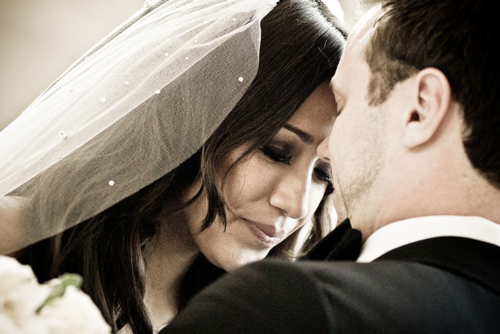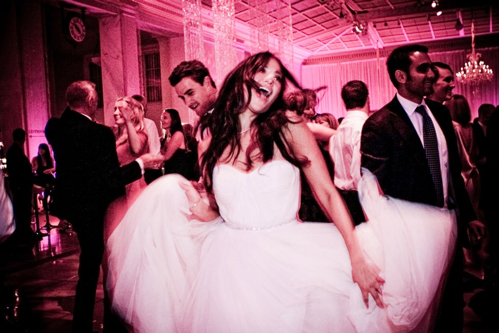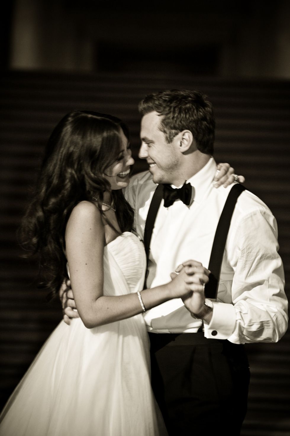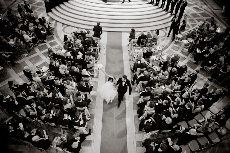 In a strapless Reem Acra gown banded with Swarovski crystals and a crystal-accented veil, Jessica walked down the stairs escorted by her father, as a soprano sang Ave Maria. After the ceremony, guests were invited to the Mezzanine for cocktails & a variety of passed hors d'oeuvres.
